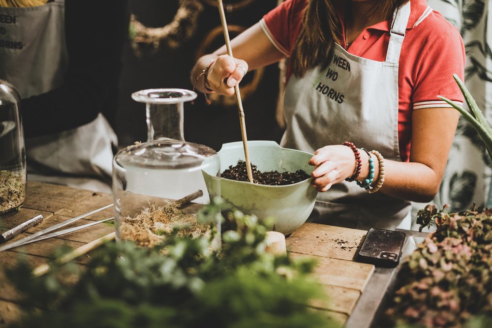 Please note the price is for 1 terrarium and 1 person building - unfortunately we do not have the space for people to share building a terrarium - so if 2 of you want to come to the workshop please book 2 spaces