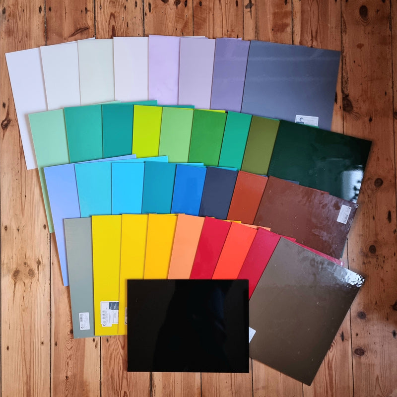 These coasters have been made with white/alternate coloured hand cut glass squares and are arranged neatly into a chequered pattern with a layer of clear glass on top (creating the soft whiteness) and fused together in the kiln to 800°c.