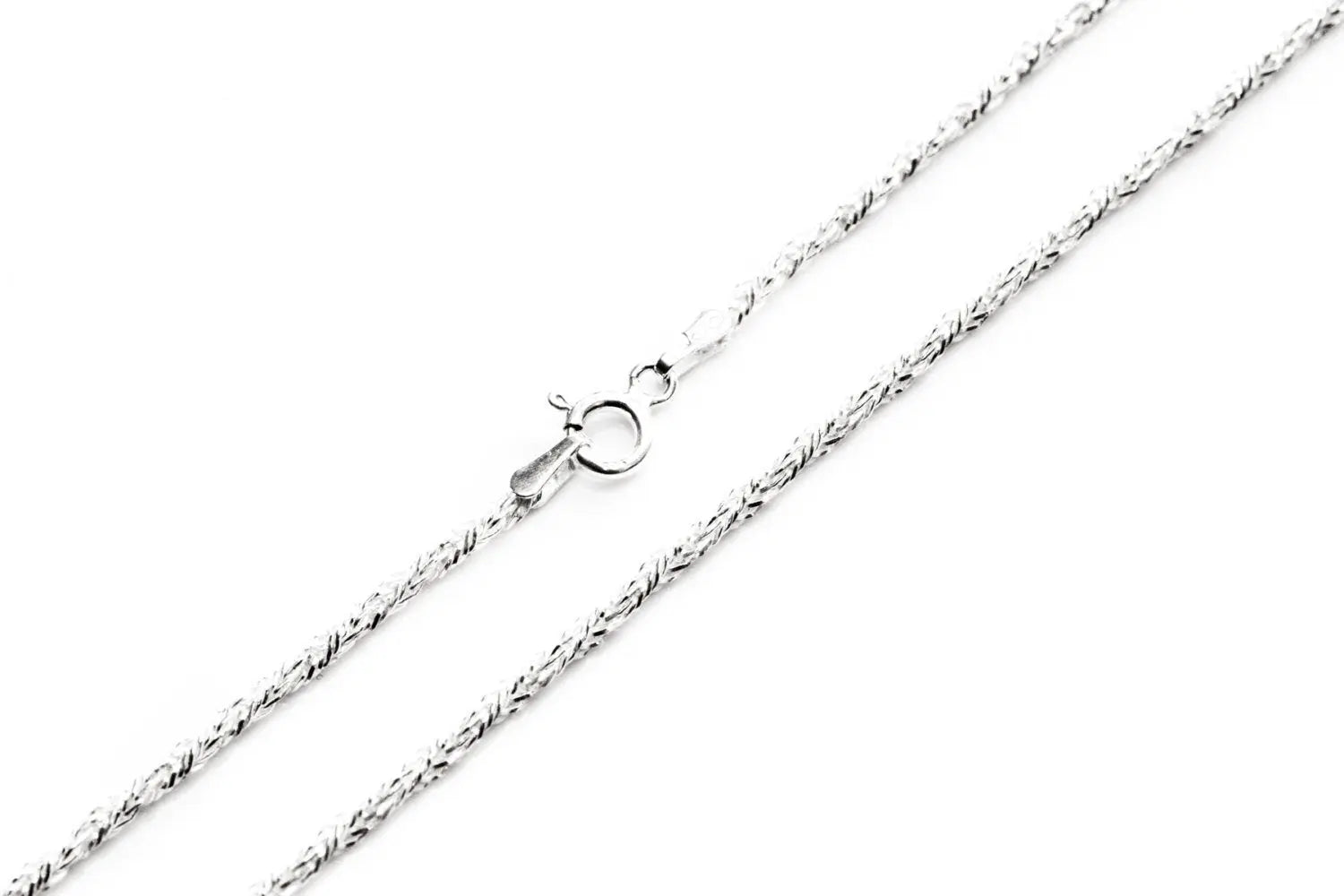 A high quality .925 sterling silver chain. A foxtail-like thickness and sparkly chain to add elegance. Standard necklace length of 17".