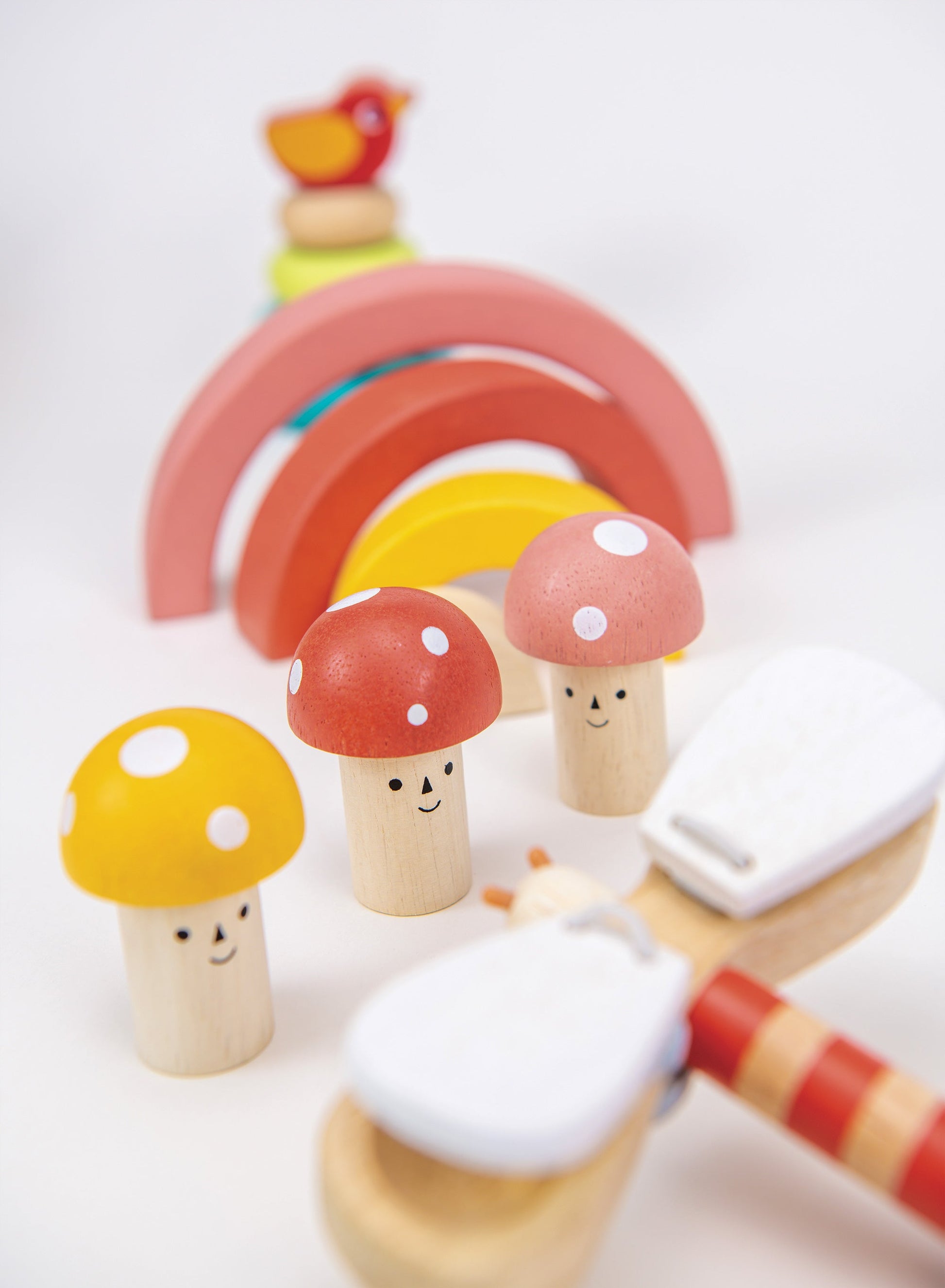 Introduce your little one to the wonders of nature with our Garden Playtime Set. This wooden toy bundle includes a stacking bird and tree, stacking rainbow, hand-held clacker, and hammer game, perfect for developing fine motor skills and creativity. A great gift for one year olds and children of 18 months and above.