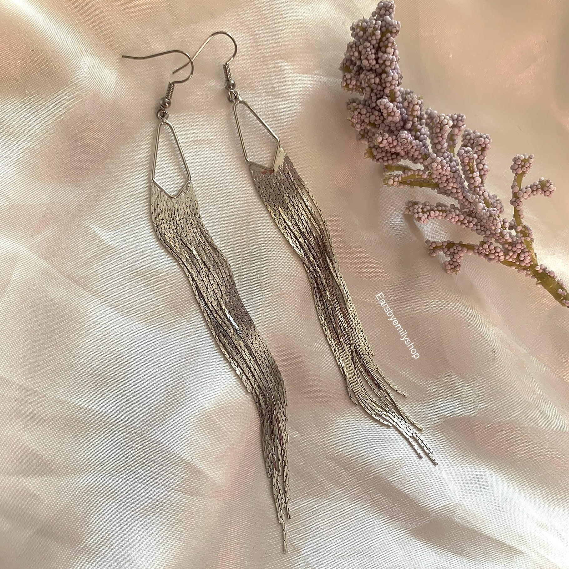 Beautiful 18k gold or silver plated large statement chain earrings.