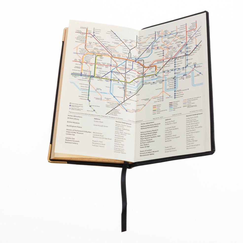 Bound in the finest natural grain black leather, the slender pocket diary has gilt edged pages, protective gilt corners and a week to view diary in landscape format.