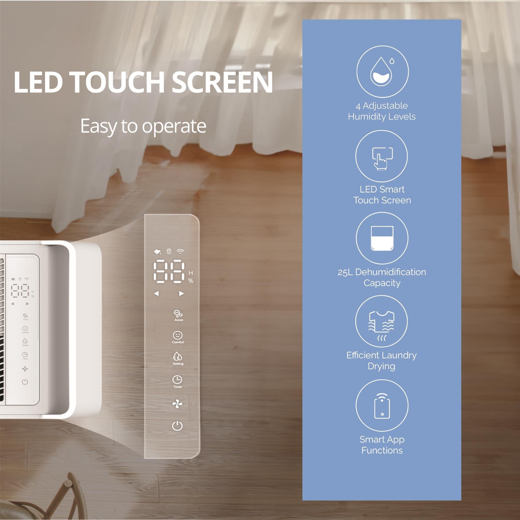 Smart Home Dehumidifier: Keep track of your home's humidity levels thanks to real-time updates from the dehumidifier's inbuilt humidity sensor. Wi-Fi controls also let you make adjustments to your dehumidifier's settings and give you access to all of the dehumidifier's functions from anywhere in the world.