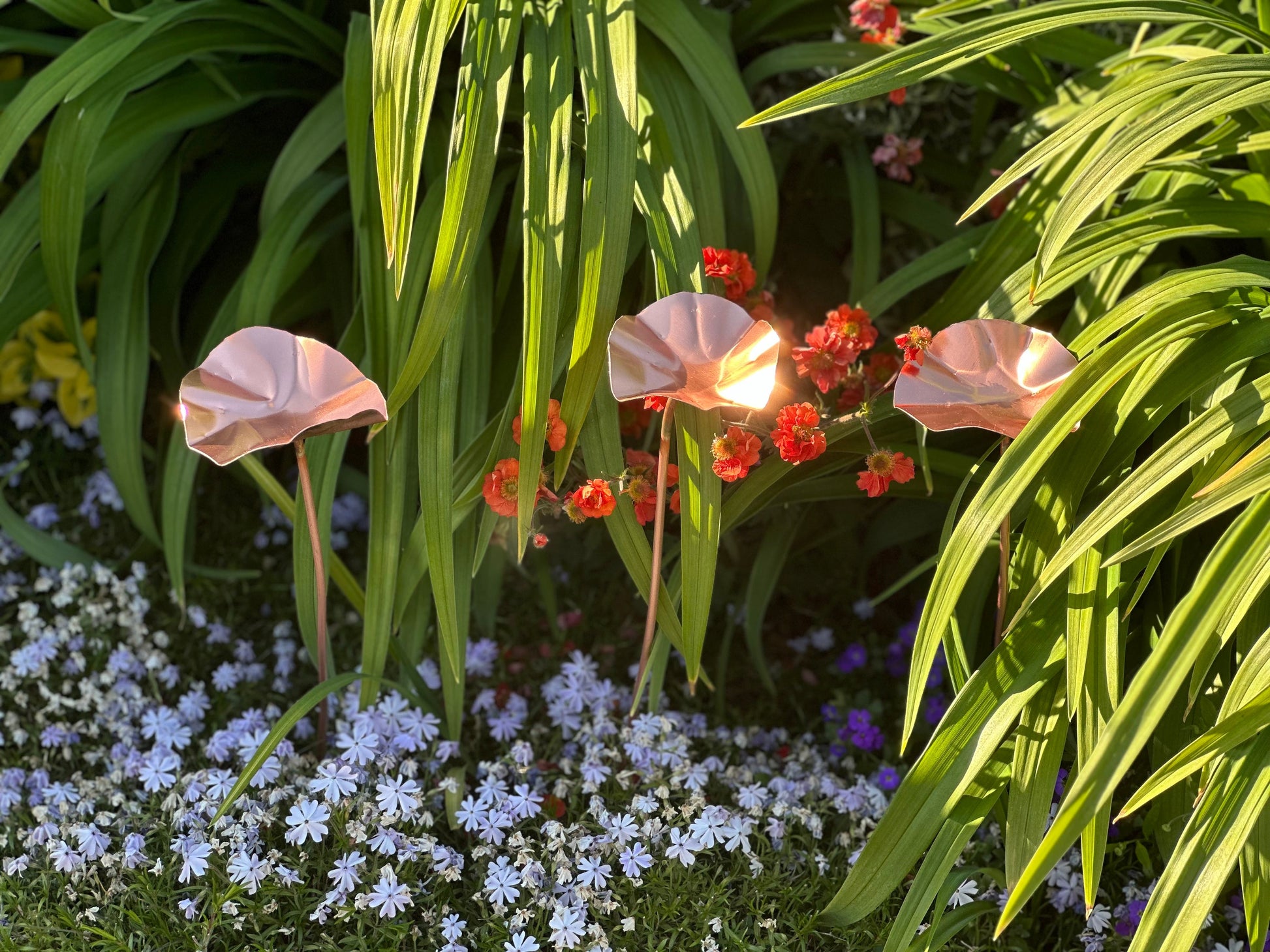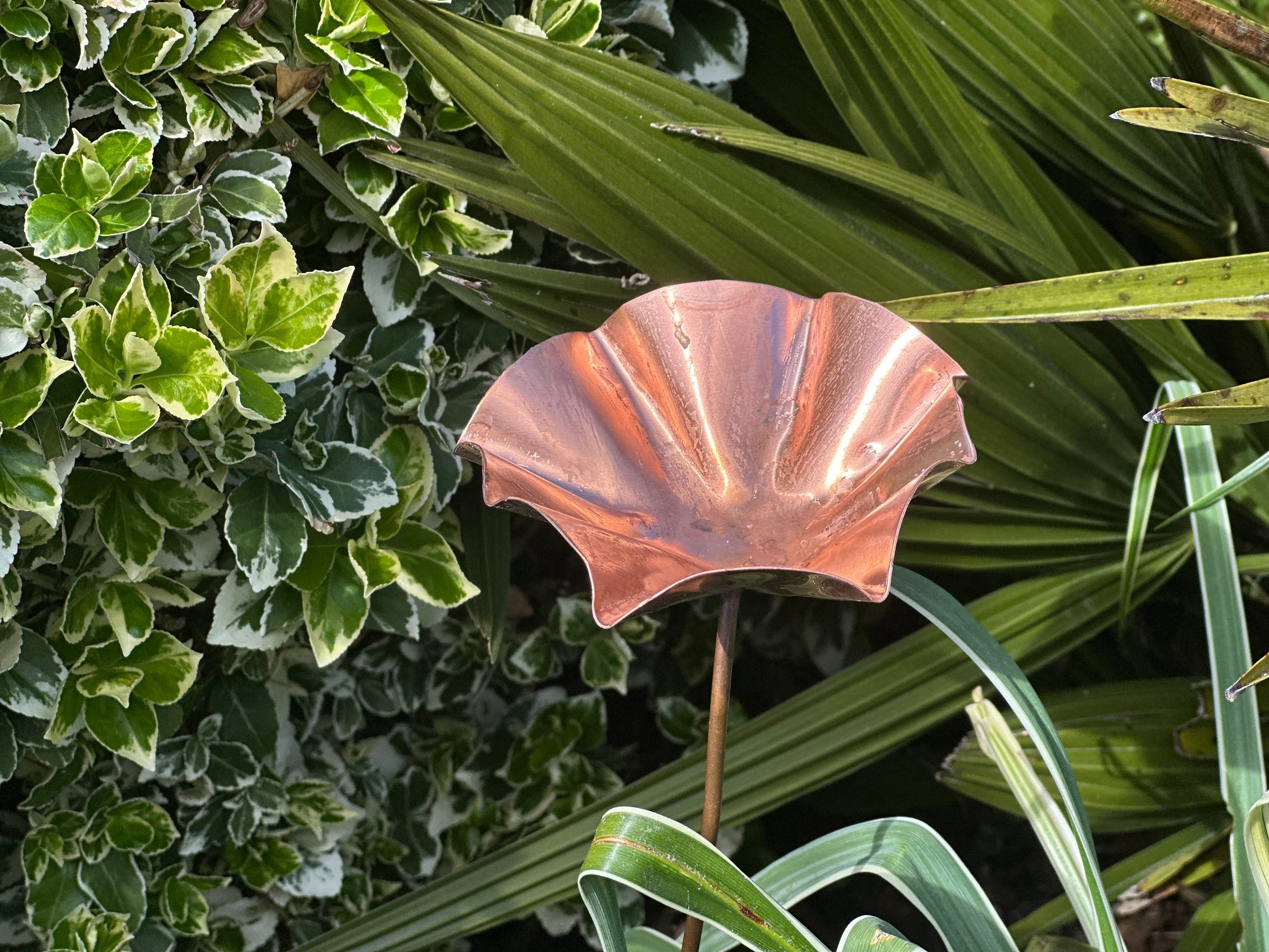 Hand made copper bee drinking stations stand 40-50cm tall and are designed to hold a little water such that bees and other flying insects can find a refreshing drink amongst your beds and borders.