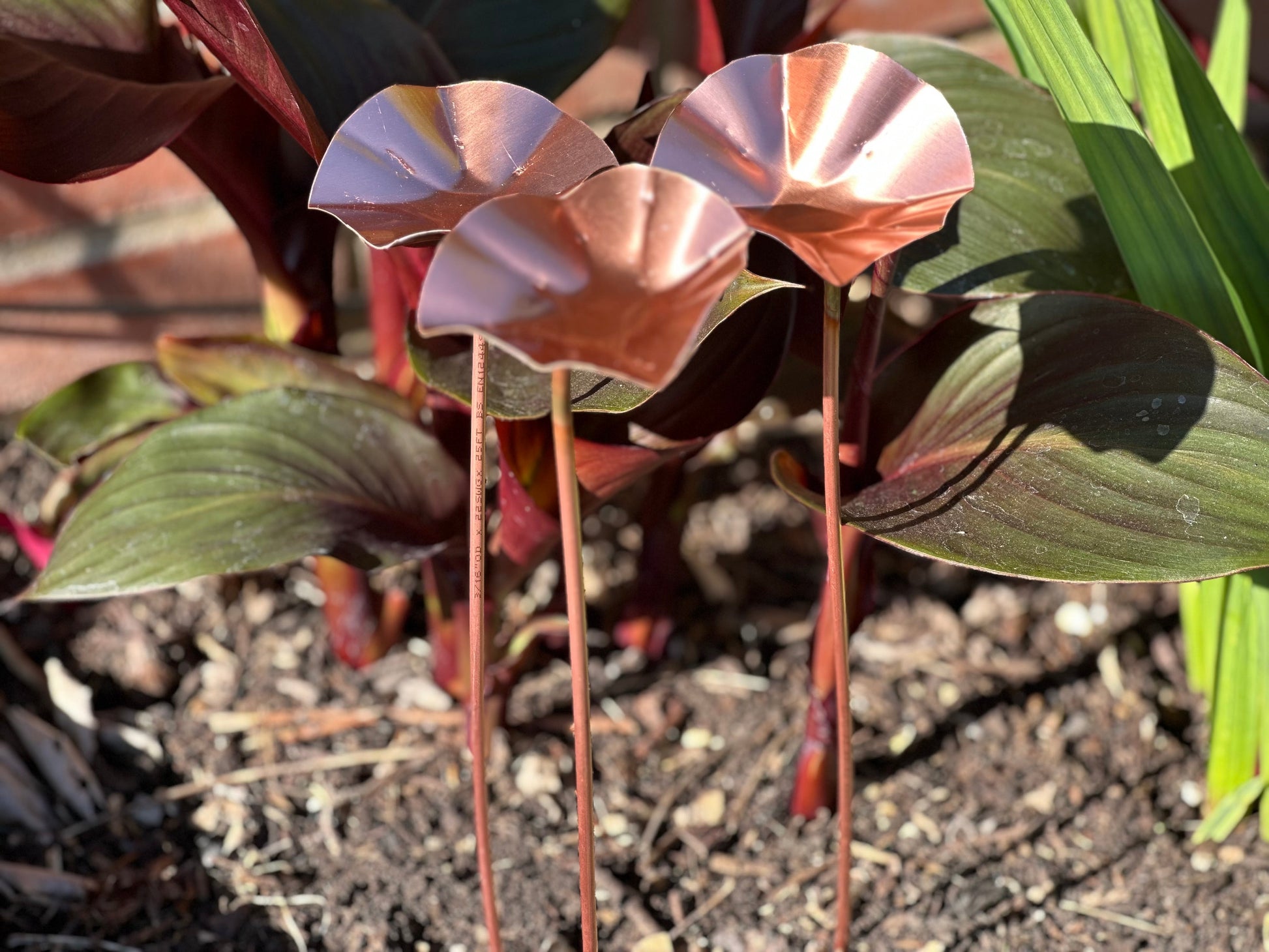 When inserting the copper stem into the ground, hold it near the bottom.