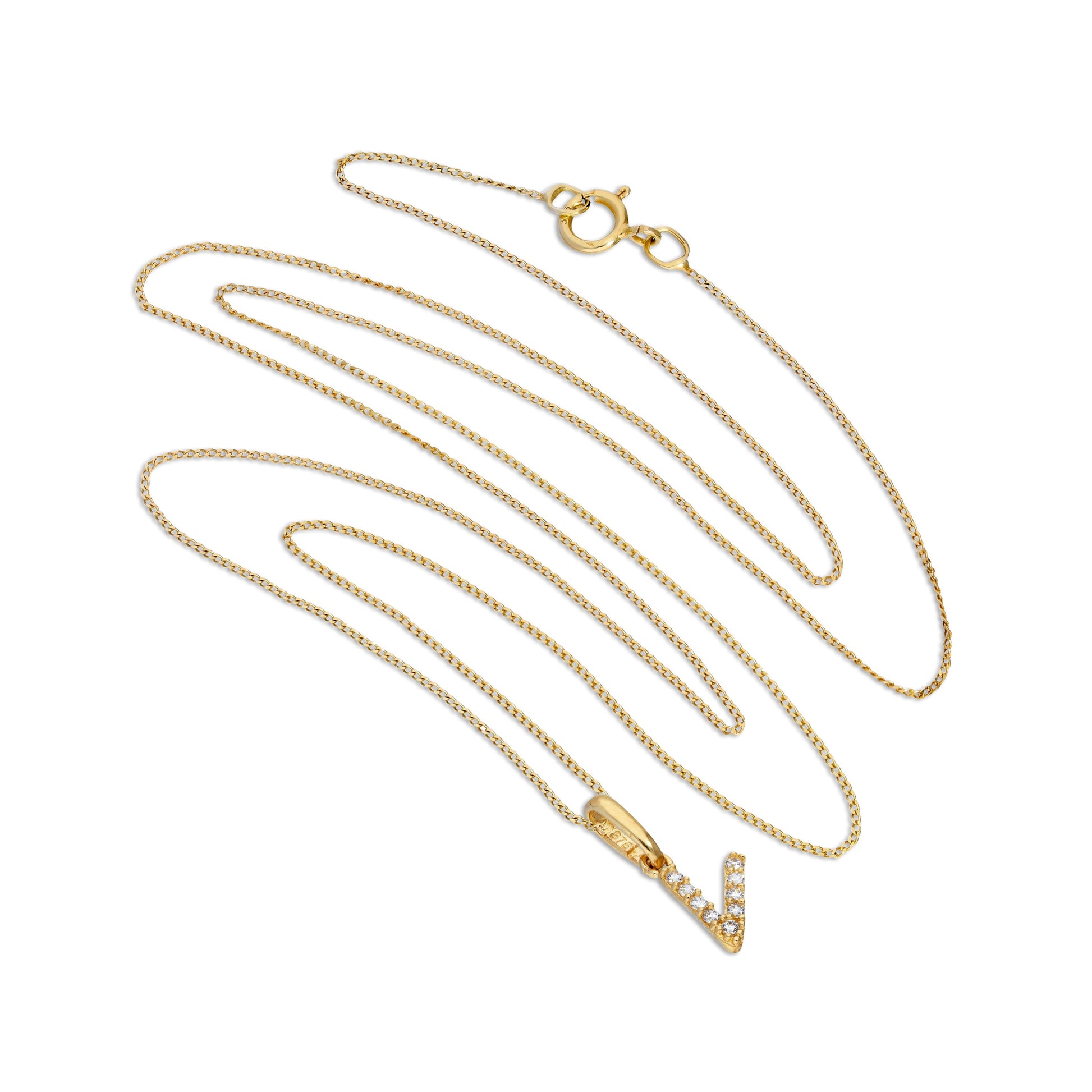 9ct Gold & Clear CZ Crystal Script Alphabet Letter V Necklace 16 - 20 Inches