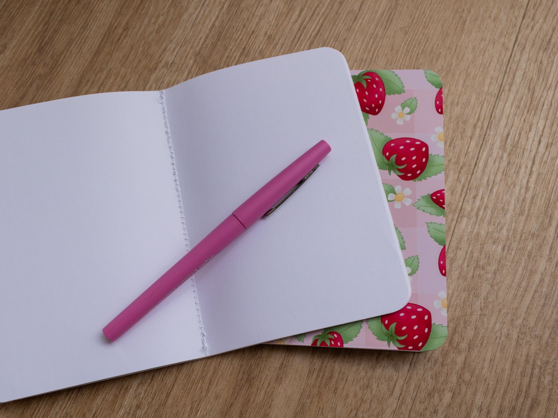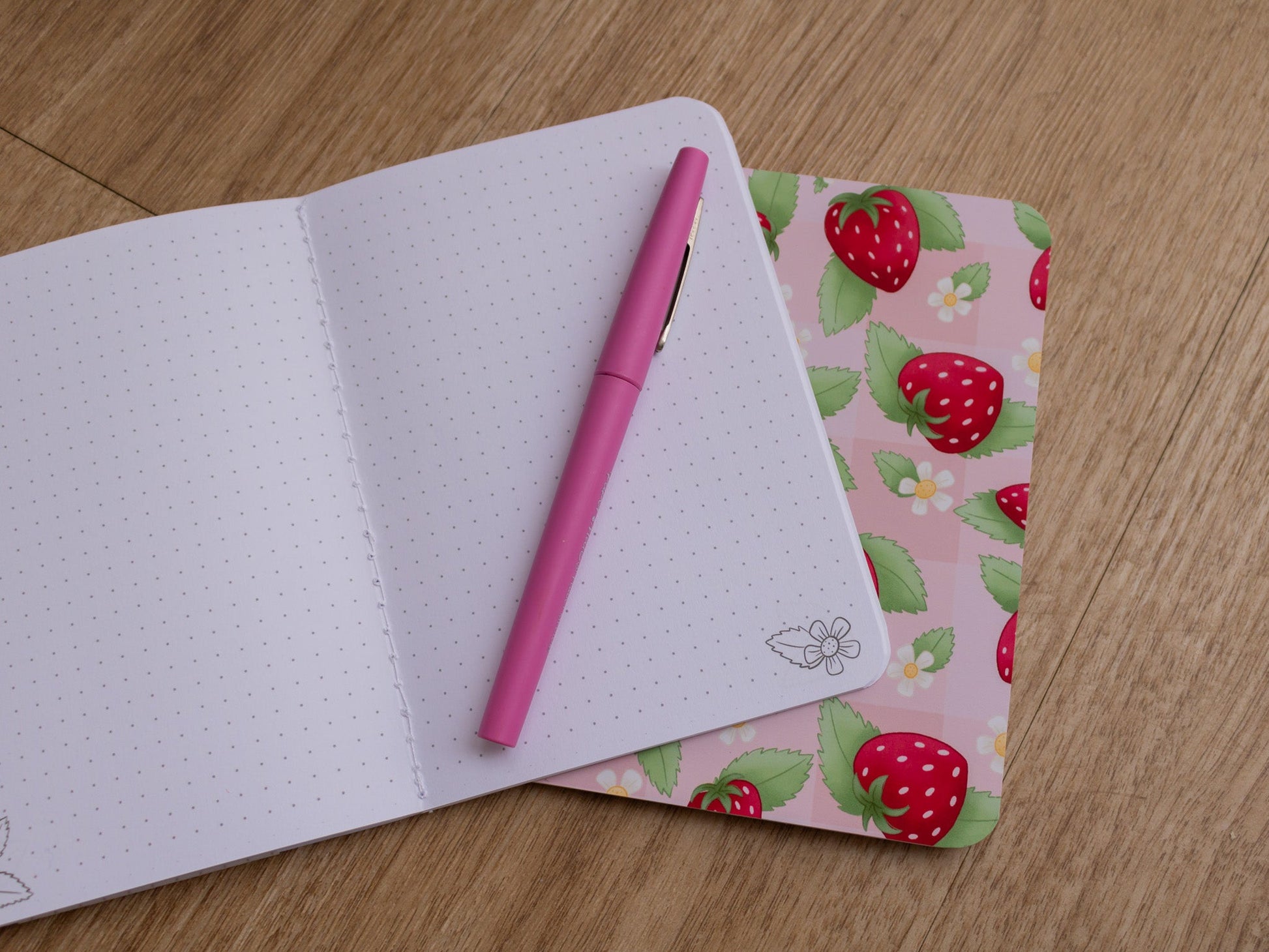 Welcome spring into your journalling life with this adorable strawberry picnic pattern handmade mini notebook.