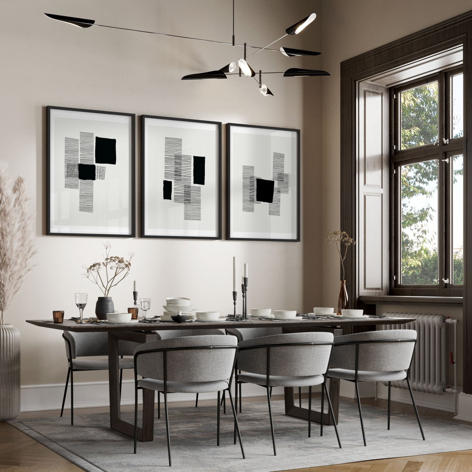 With a sophisticated black and white gallery colour palette, these abstract designs bring contrast and elegance to your decor. Feel the harmonious fusion of shapes and textures uplifting your space, creating a focal point that's sure to spark conversation.