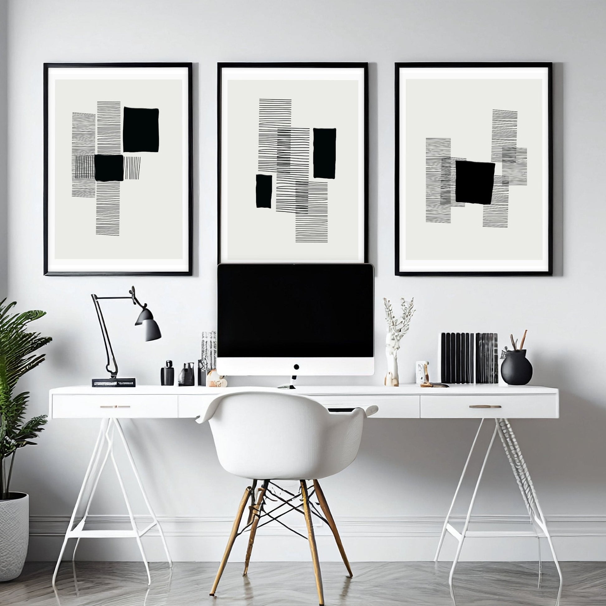 - You will receive a Set of 3 Abstract Wall Art Prints for your office wall art.