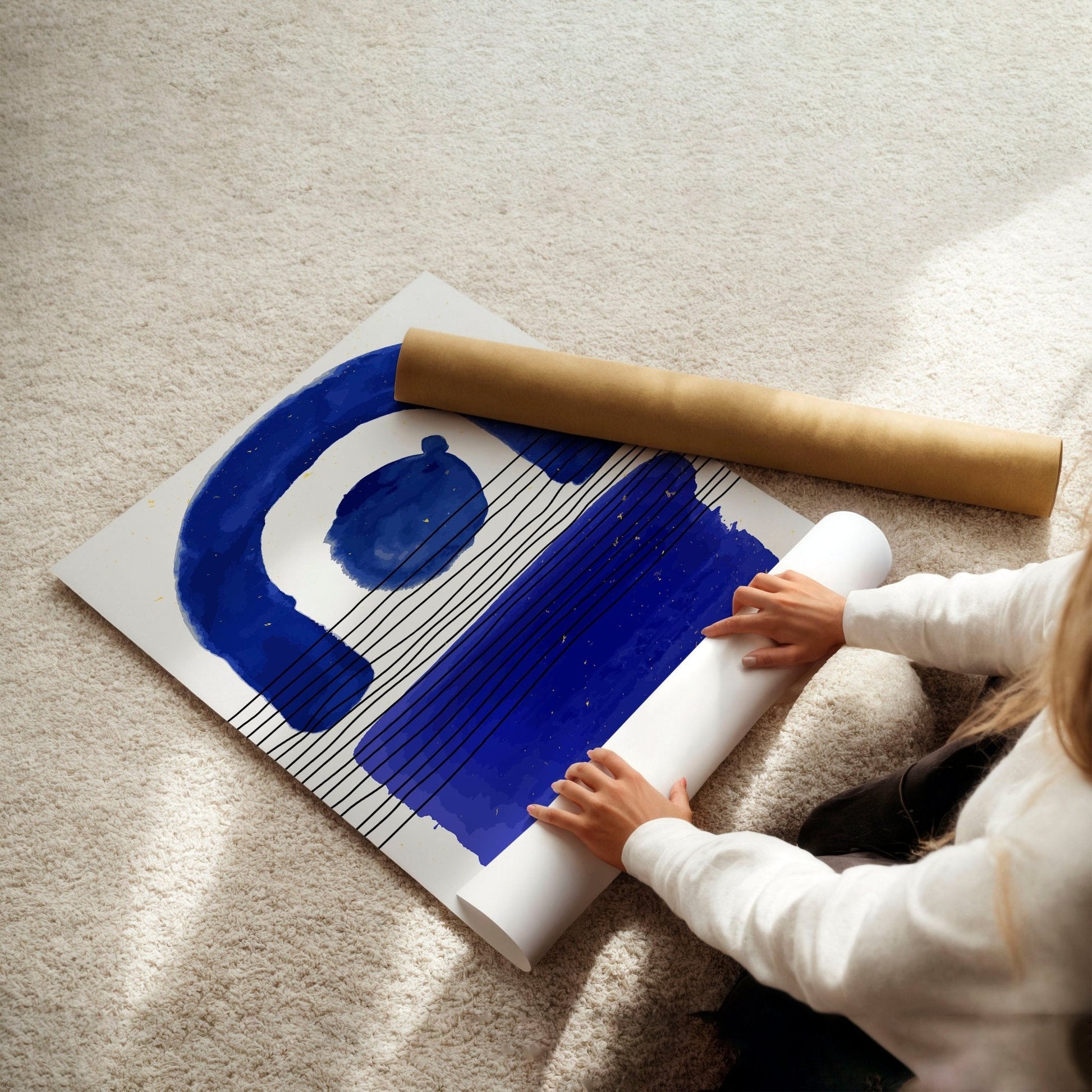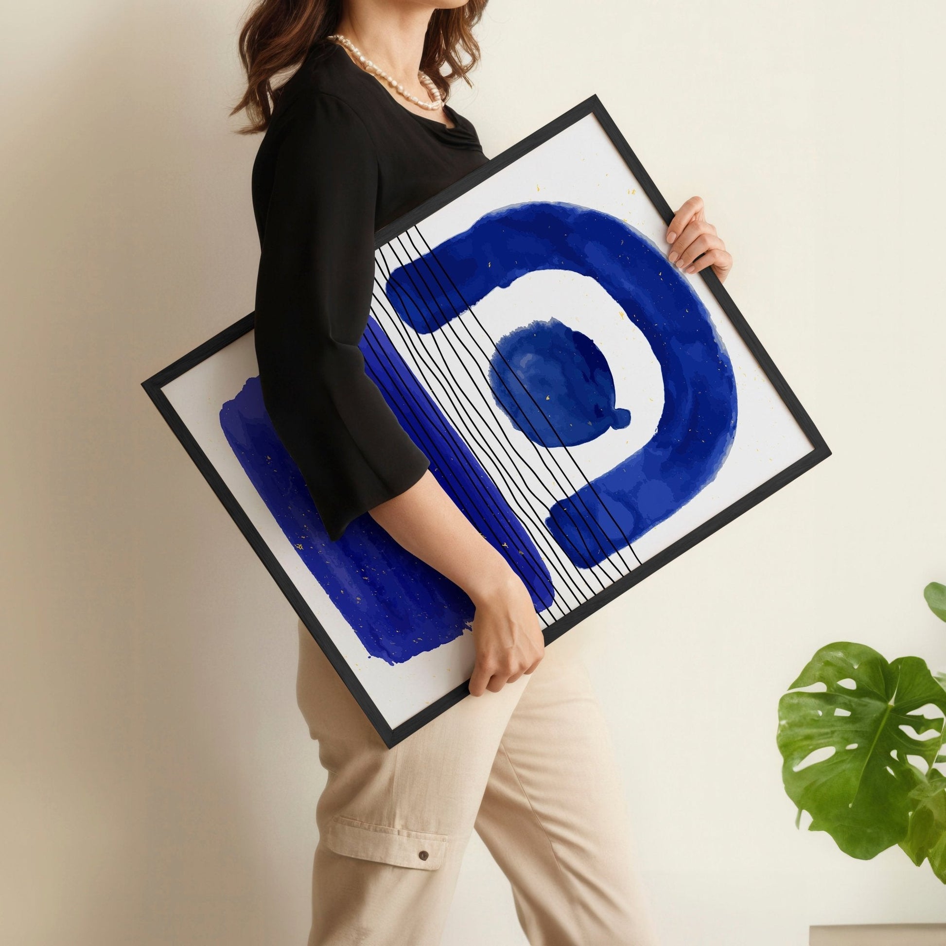 Feel the allure of this abstract art as vivid blues dance across your walls, invoking tranquillity and focus. The interplay of shapes and colours stimulates the senses, motivating new ideas and enhancing your work environment. The soothing colour palette ensures a calm yet dynamic atmosphere, making your office not only look refined but also feel invigorating every day.