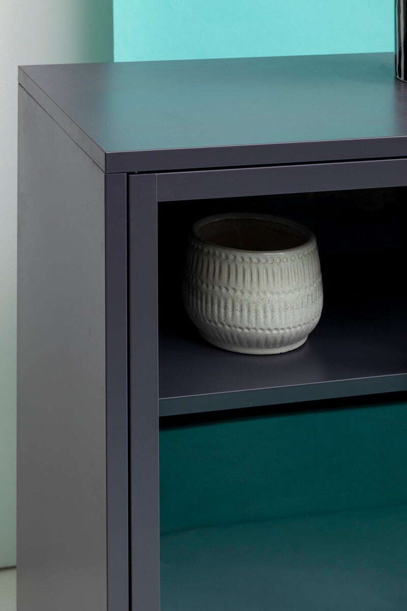 The Acier two door metal cabinet is an elegant blend of style, functionality, and durability. Made from strong and sturdy metal, this cabinet is primed with clear tempered glass doors that offer a peek inside and add style to your home. The chic black finish of this modern cabinet offers an industrial charm to contemporary abodes and workplaces.