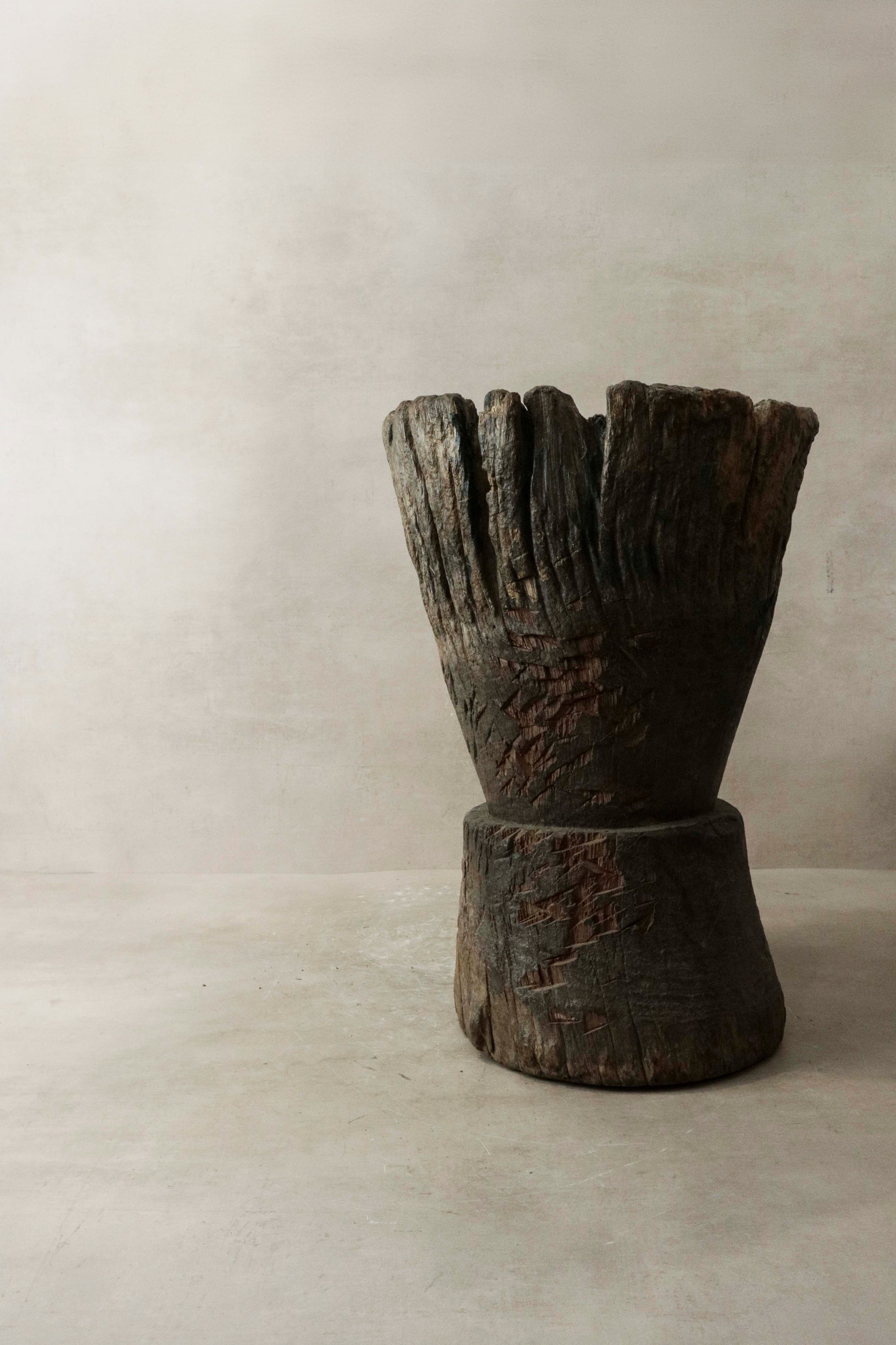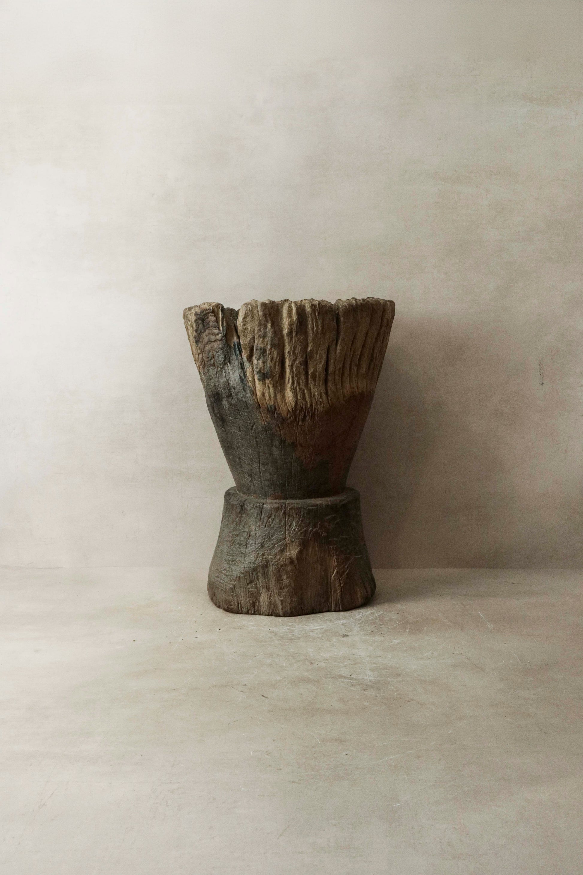 African grain stompers are made when they hollow out tree trucks and large branches to create these which are then used to grind grain. They can be used as planters or turn them upside down to be used as stools/ planters or simply standing as a piece of sculpture.