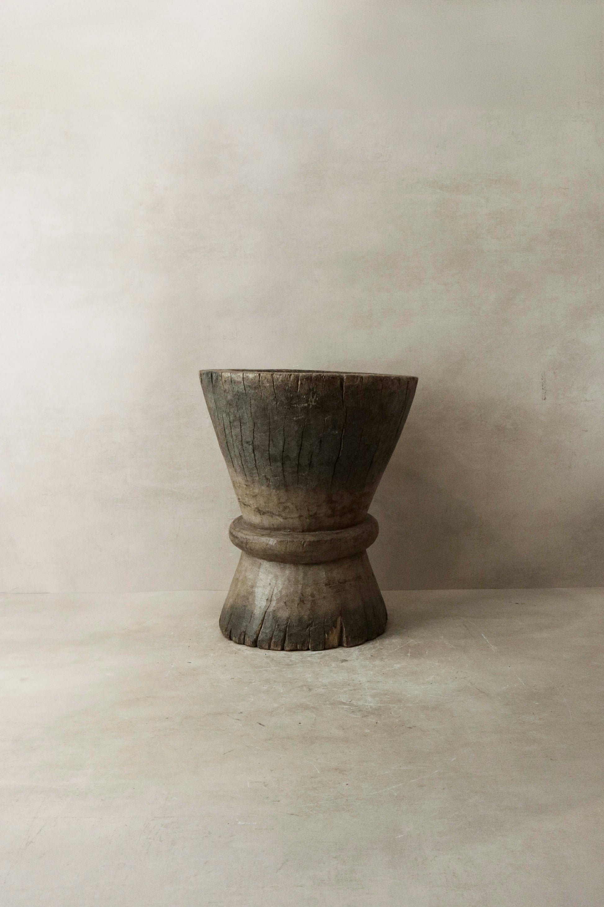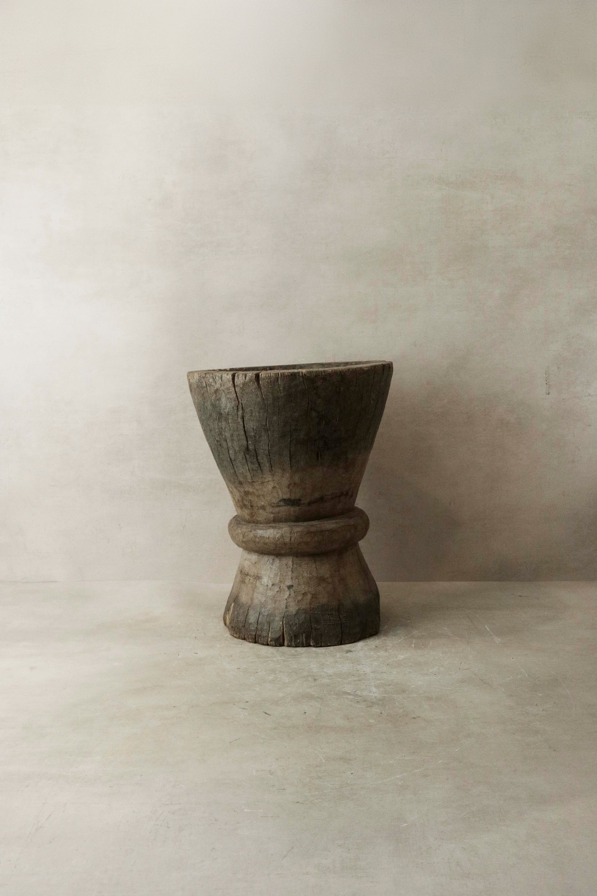 African grain stompers are made when they hollow out tree trucks and large branches to create these which are then used to grind grain. They can be used as planters or turn them upside down to be used as stools/ planters or simply standing as a piece of sculpture.