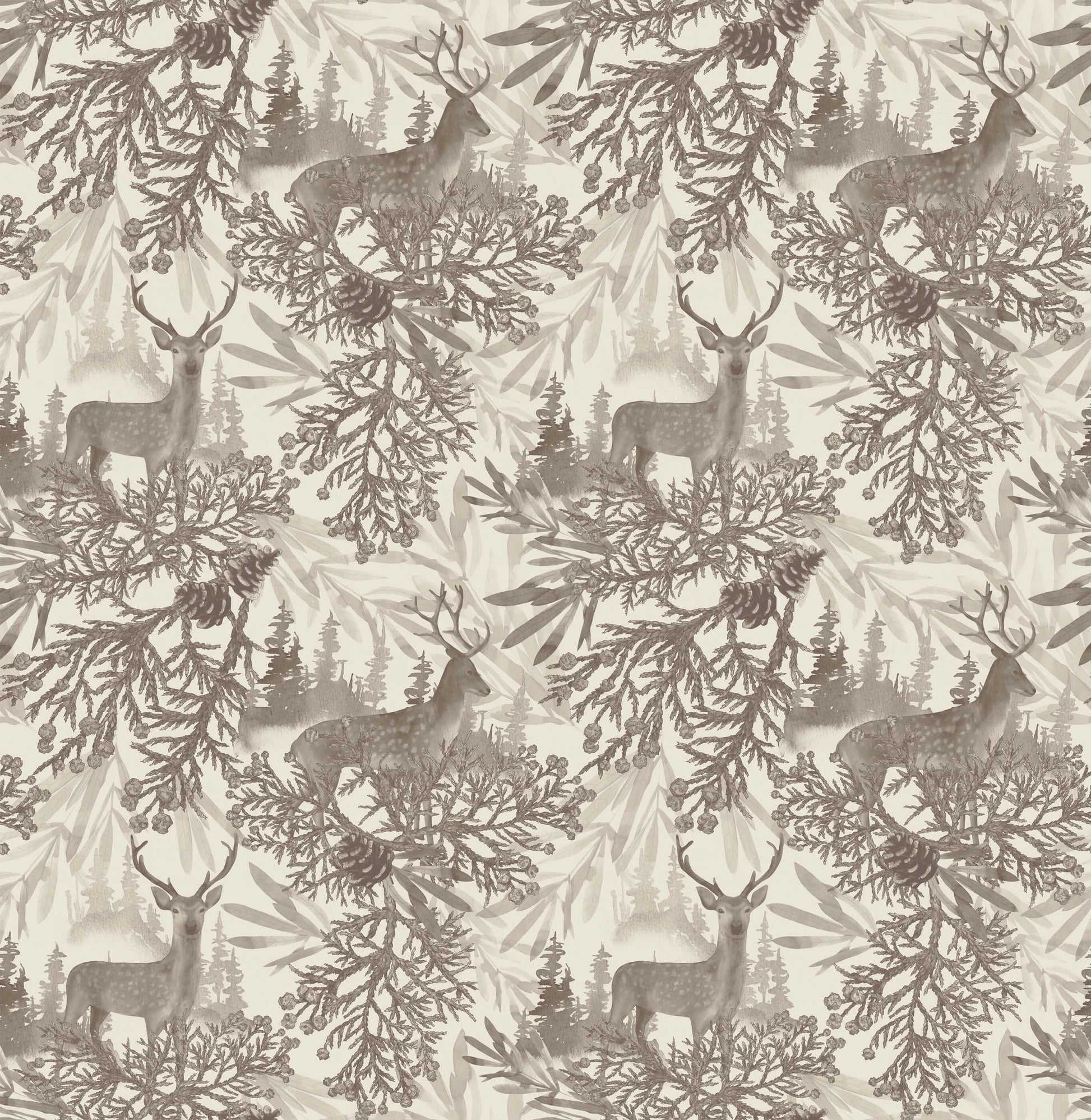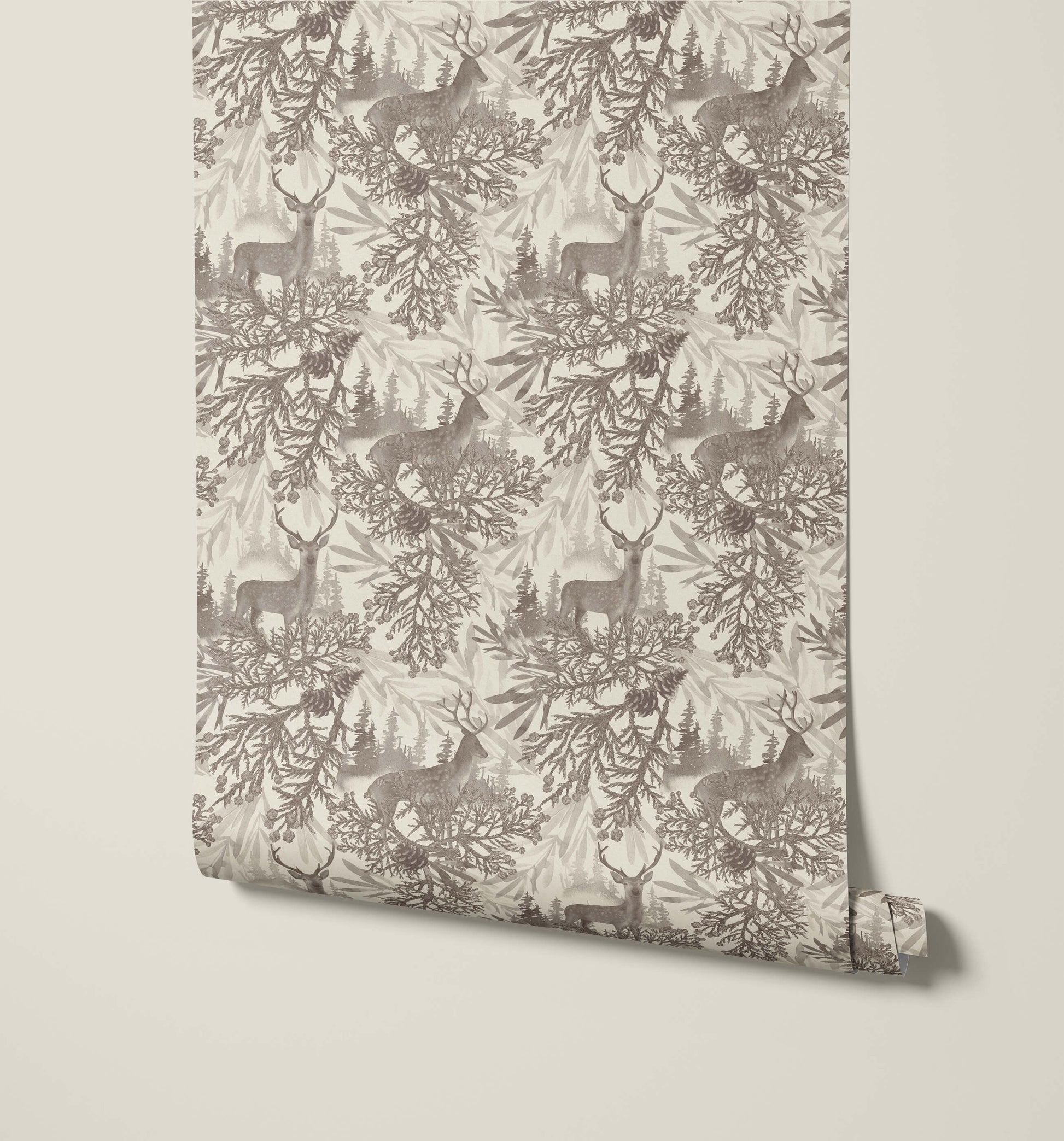 Bring a sense of rustic charm into you space with our stag wallpaper. The design, which comes in soft brown tones features watercolour stags amongst branches and leaves.