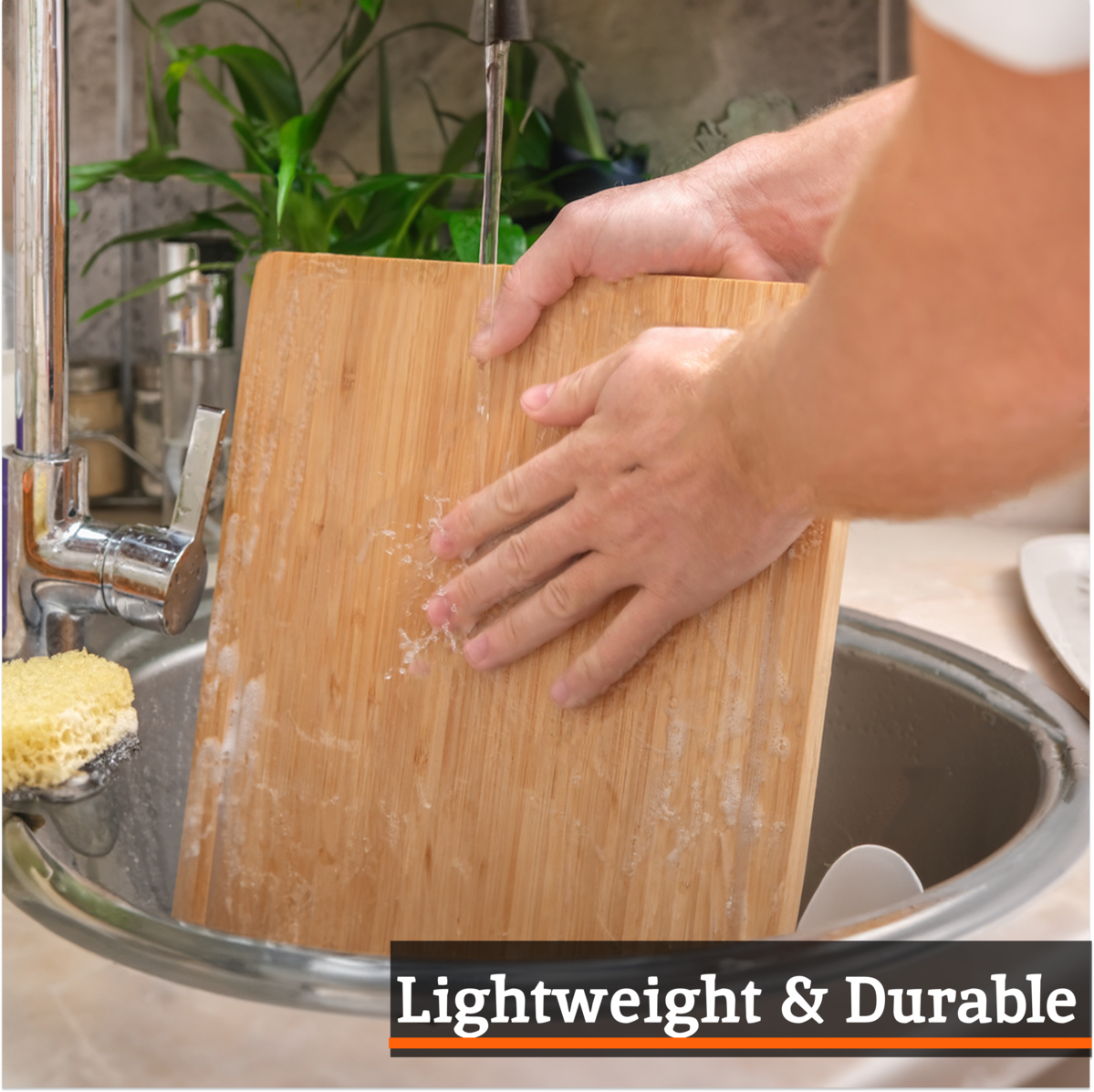 Made from natural bamboo, this set of three chopping and serving boards has a non porous surface that prevents bacterial growth, making it ideal for kitchen countertops. Coming in varied sizes, these flat boards are ideal to meet everyday cutting and slicing needs.