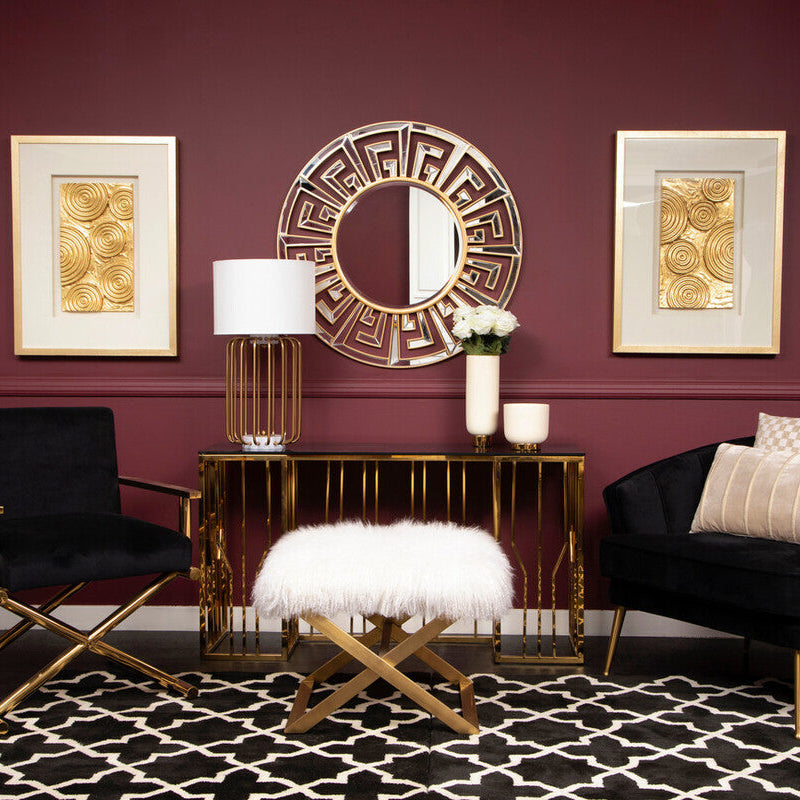 The Alvaro Console Table in Gold and Black Glass Top coordinates effortlessly with other Alvaro pieces, letting you build a cohesive story from entry to living room.