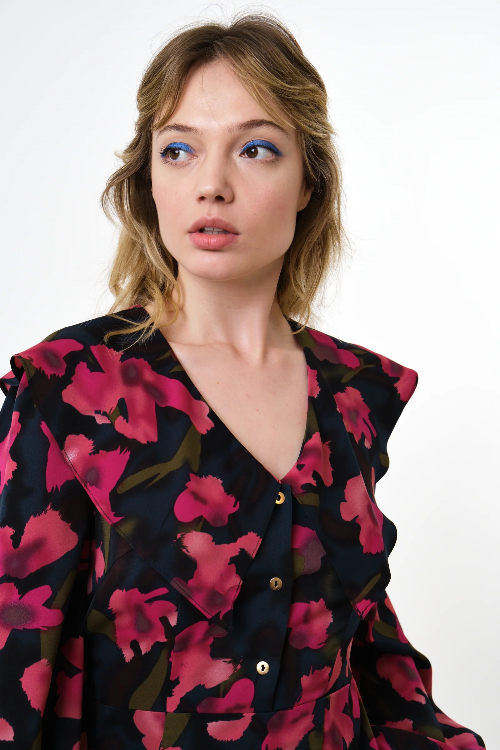 Make a statement in the Amada watermark floral dress! Featuring a flattering v-neckline with a flutter collar, this dark-toned printed dress is perfect for all your festive occasions and beyond.