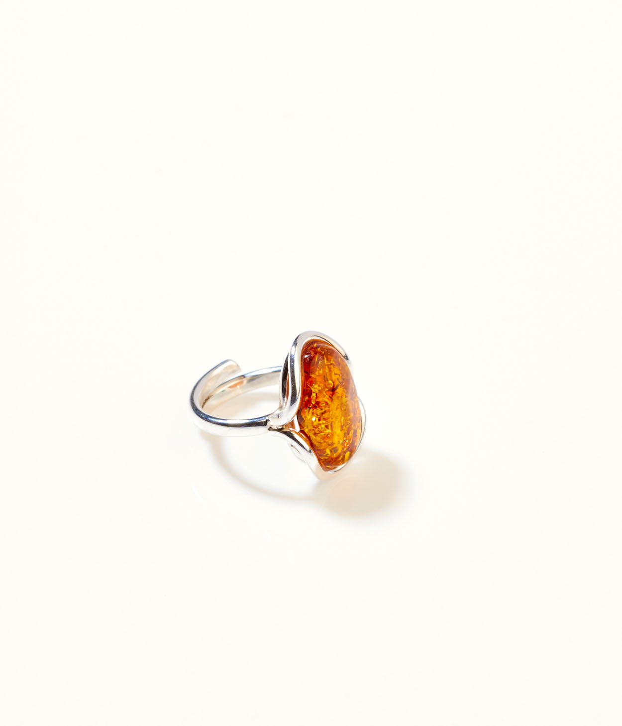 This elegant ring features a petite piece of amber, its warm glow reminiscent of the tranquil sea. Set in a delicate silver design that echoes the gentle ripples of the ocean, it offers a subtle yet captivating touch of coastal beauty.