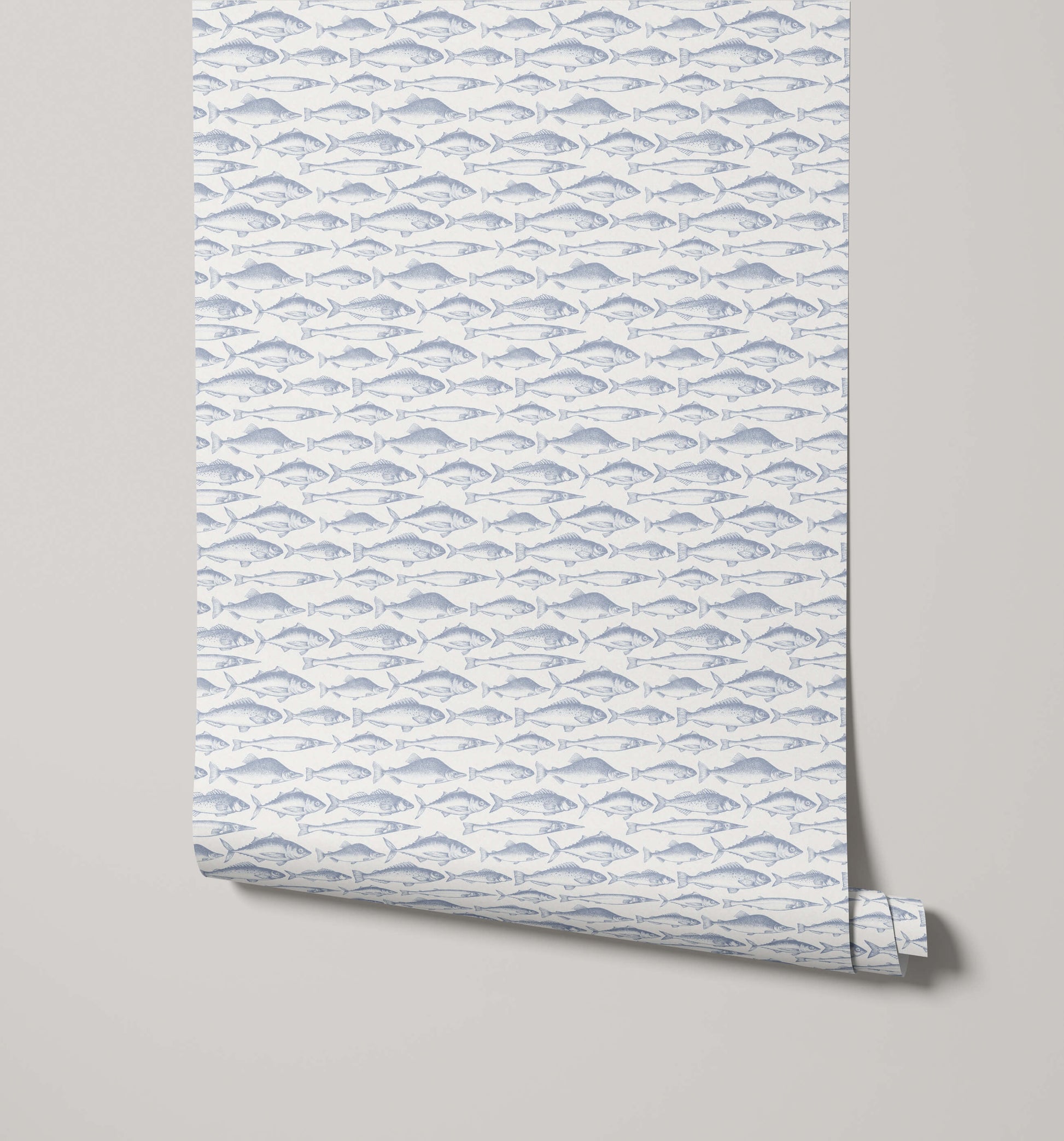 The intricate drawing style gives the fish wallpaper a sophisticated, almost scientific illustration quality, moving it beyond a simple novelty pattern. The dense packing of the motif provides a strong textural element, ensuring the wallpaper adds visual interest and depth even from a distance. It is an excellent choice for adding character and a unique coastal or rustic feel to a bathroom, kitchen, or children's bedroom, capturing the timeless appeal of maritime life.