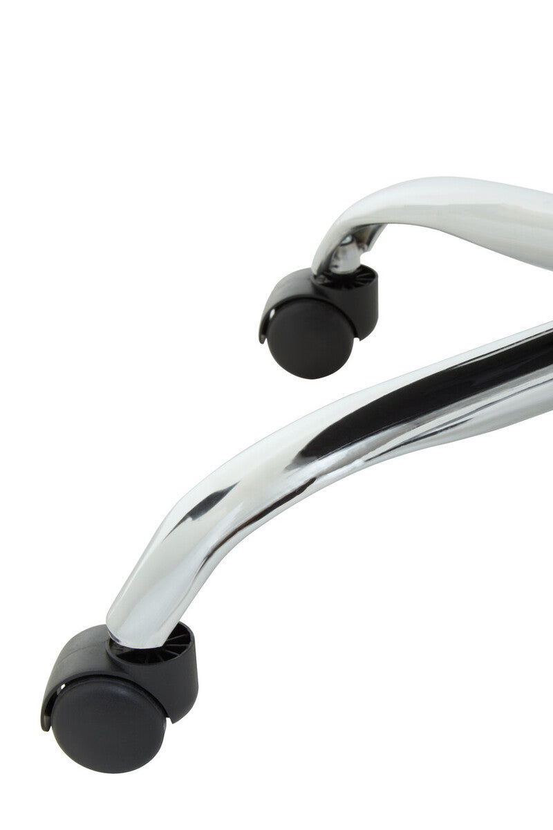 This office chair is upholstered skilfully with dense foam padding in grey fabric. The high-back showcases diamond pattern tufting and the 360-degree swivel base in chrome finish comes with five caster wheels to ensure swift mobility and support.