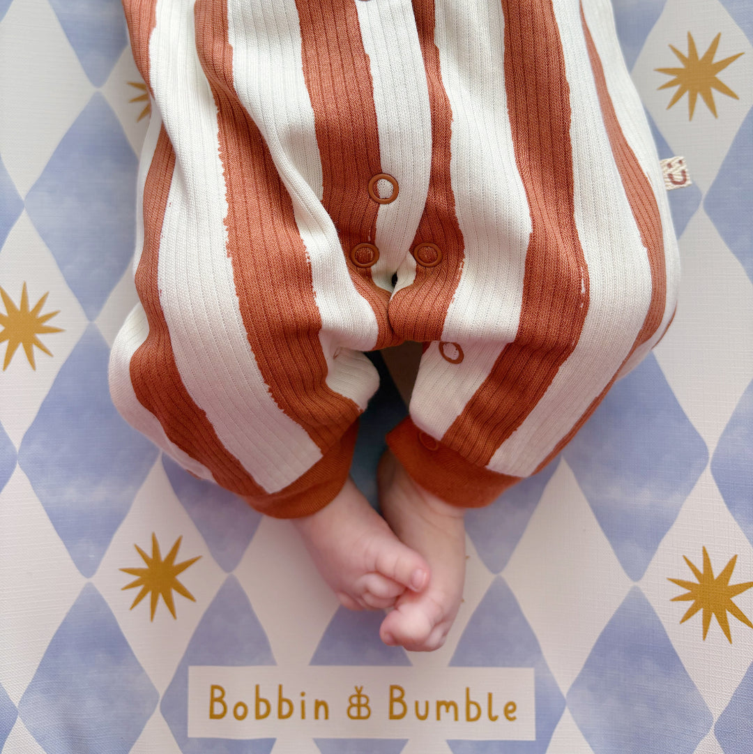 Our Blue Harlequin Wedge Changing Mat features a timeless diamond checkered design in soft shades of blue, bringing a bold yet versatile look to your baby’s changing space. Whether you’re going for a circus-inspired nursery or simply love a clean, graphic pattern, this exclusive Bobbin and Bumble design adds a touch of charm and sophistication to your setup.