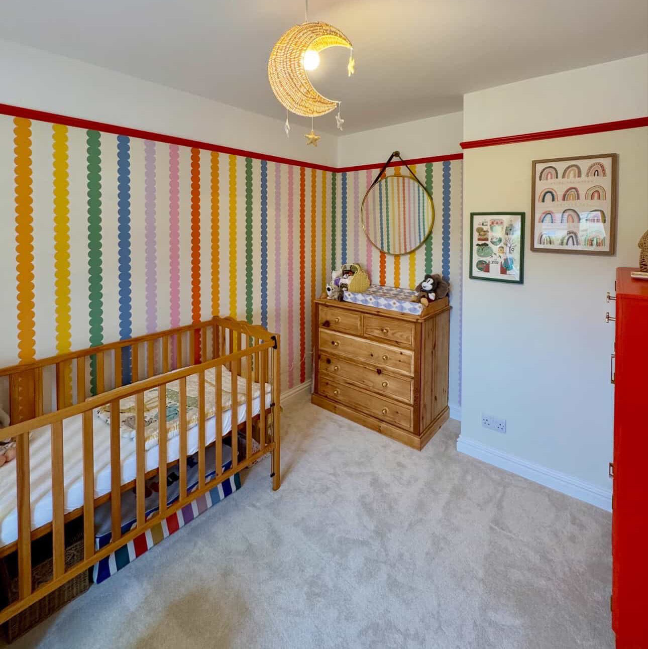 The geometric print pairs beautifully with a variety of themes. Perfect for both baby boys and gender-neutral spaces.