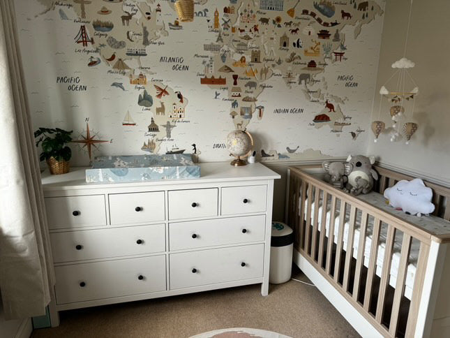 Complete your nursery décor with our charming World Map Standard Changing Mat, designed with extra padding for added comfort and support.