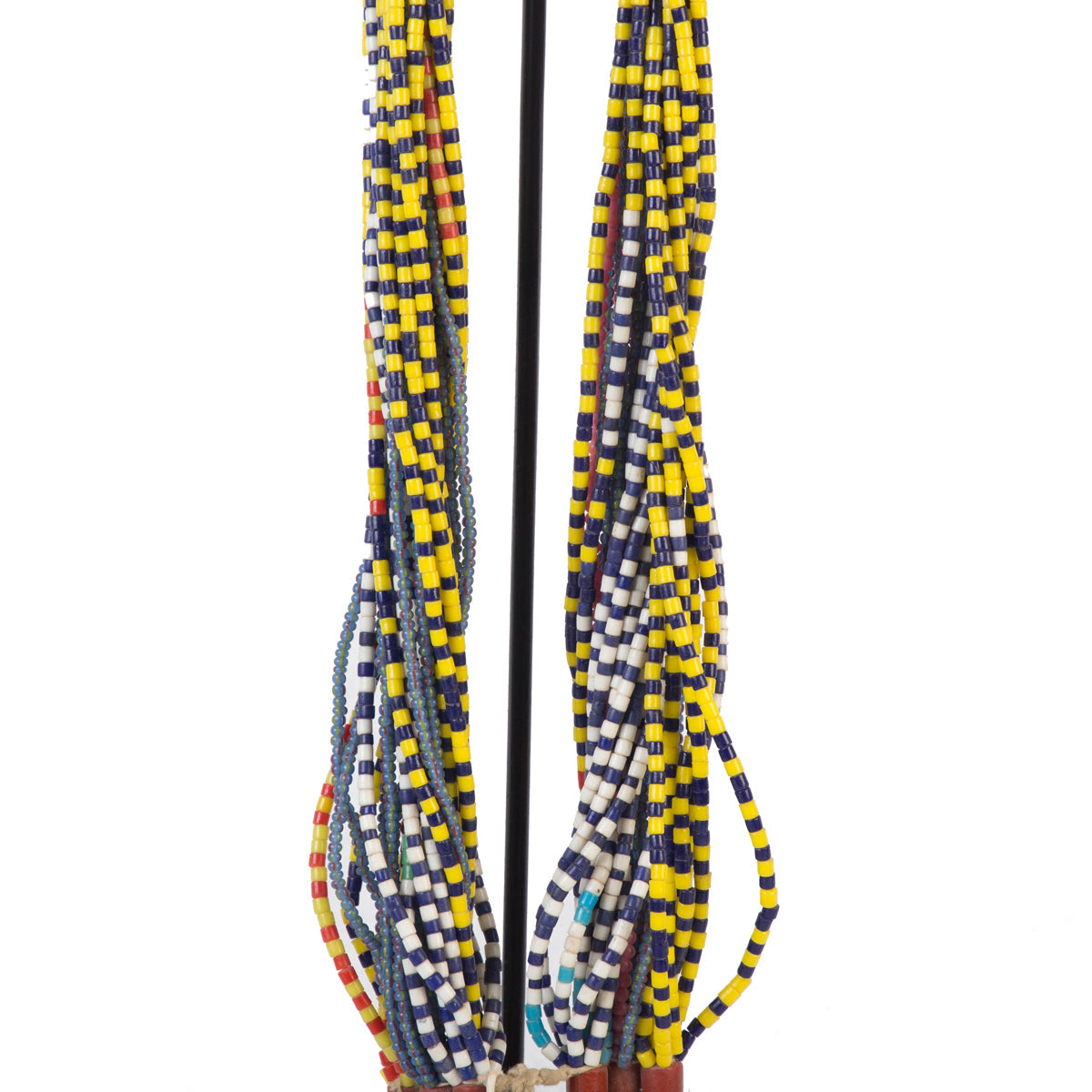 A unique antique necklace with multi colourful strands and brass ends is a stunning jewellery art piece. Tribal jewellery from the Nupe people in Nigeria.