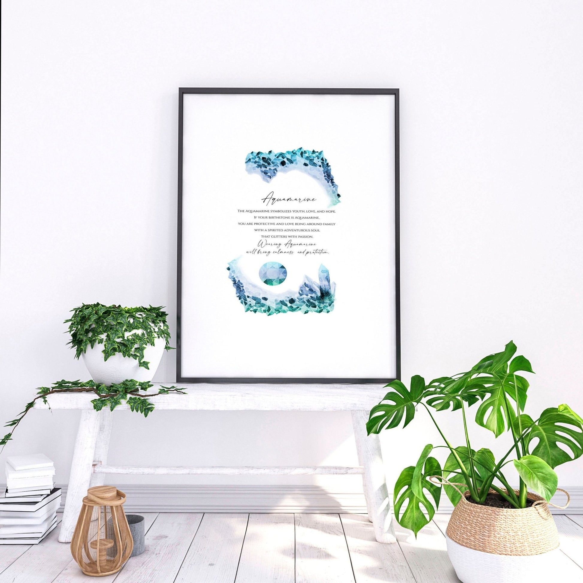 Elevate your home decor with our stunning December birthstone Aquamarine wall art print. This beautiful art print captures the essence of December's birthstone with its mesmerising blue-green colour and captivating sparkle.