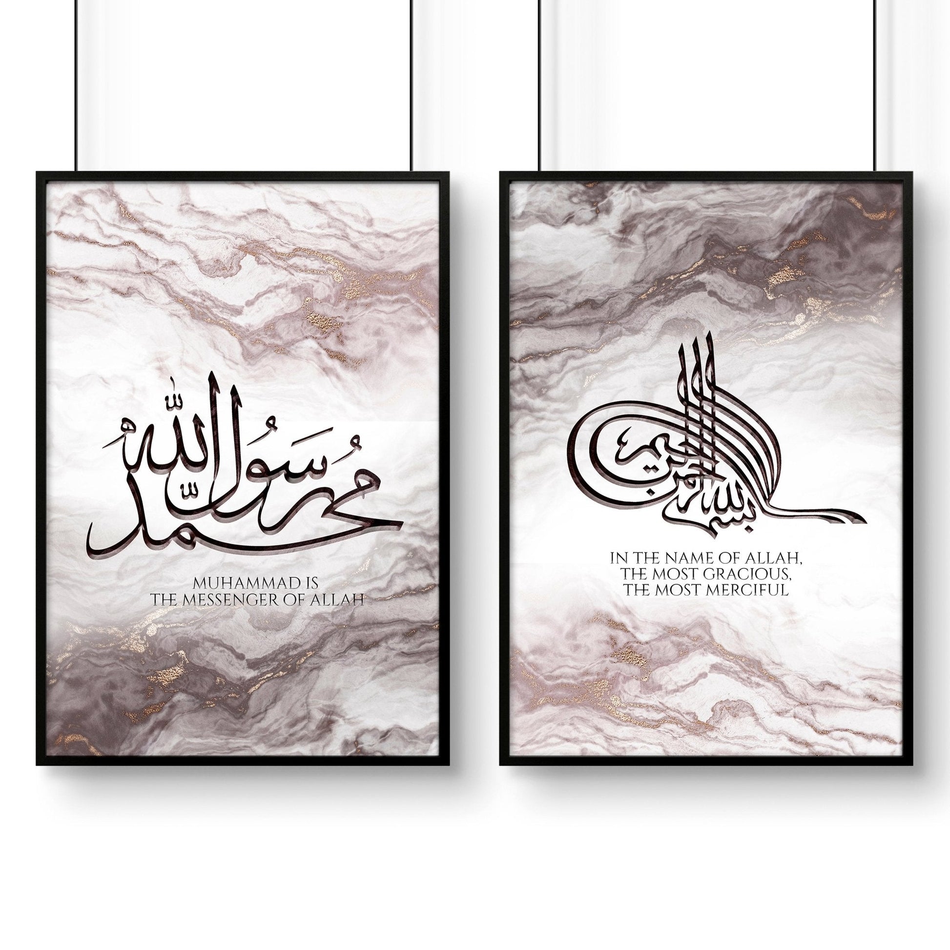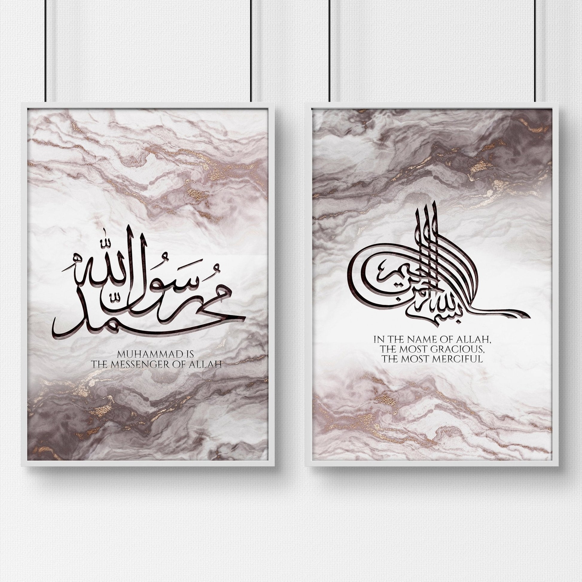 Infuse your bedroom with the timeless elegance of Arabic calligraphy with our set of two meticulously crafted wall art prints.