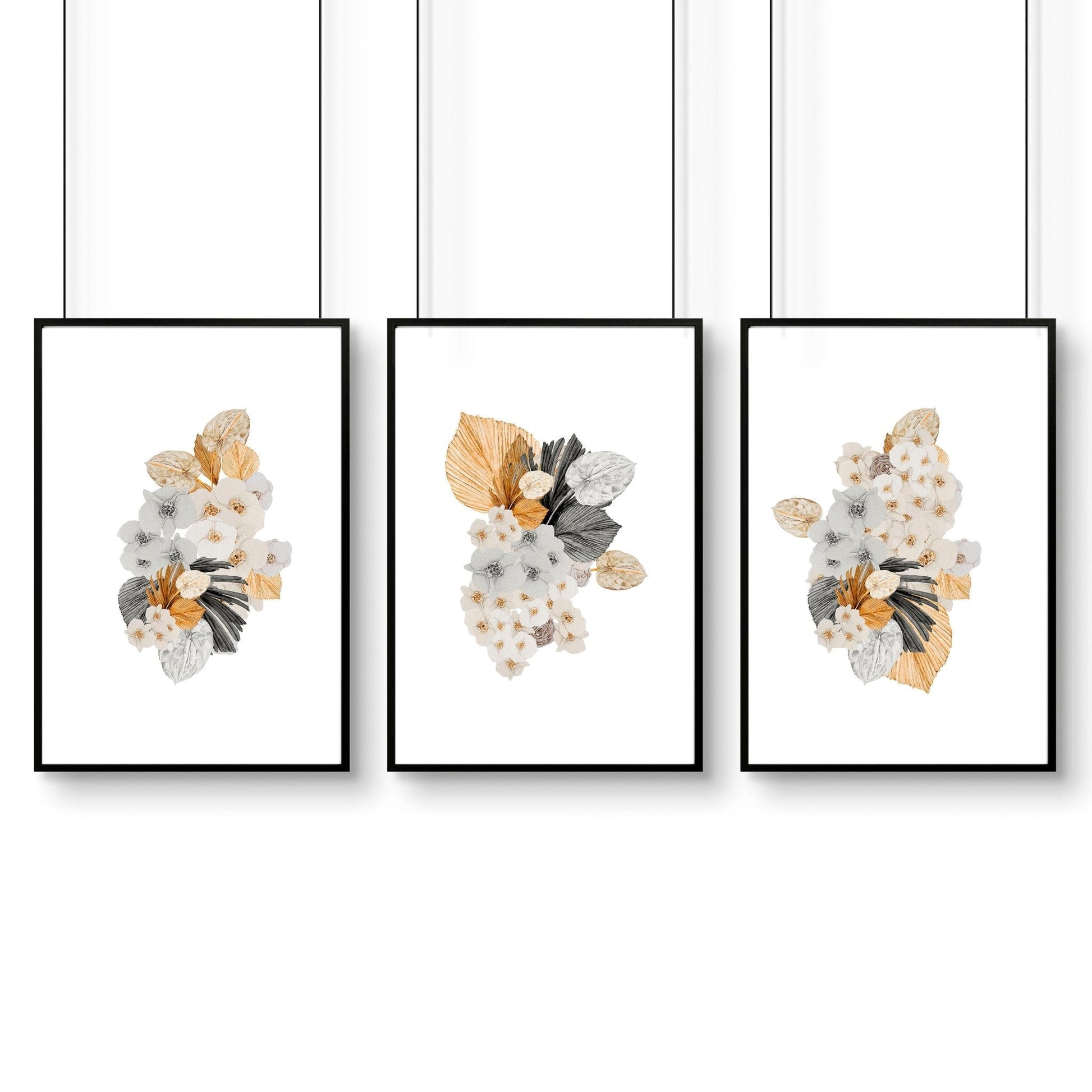 Finally, embrace the fusion of elegance and bohemian spirit in your office environment. The gentle interplay of grey and peach tones adds a subtle yet impactful contrast, creating a refined and inviting aesthetic. Let these prints inspire you as you work, surrounded by the soothing beauty of nature's elegance.