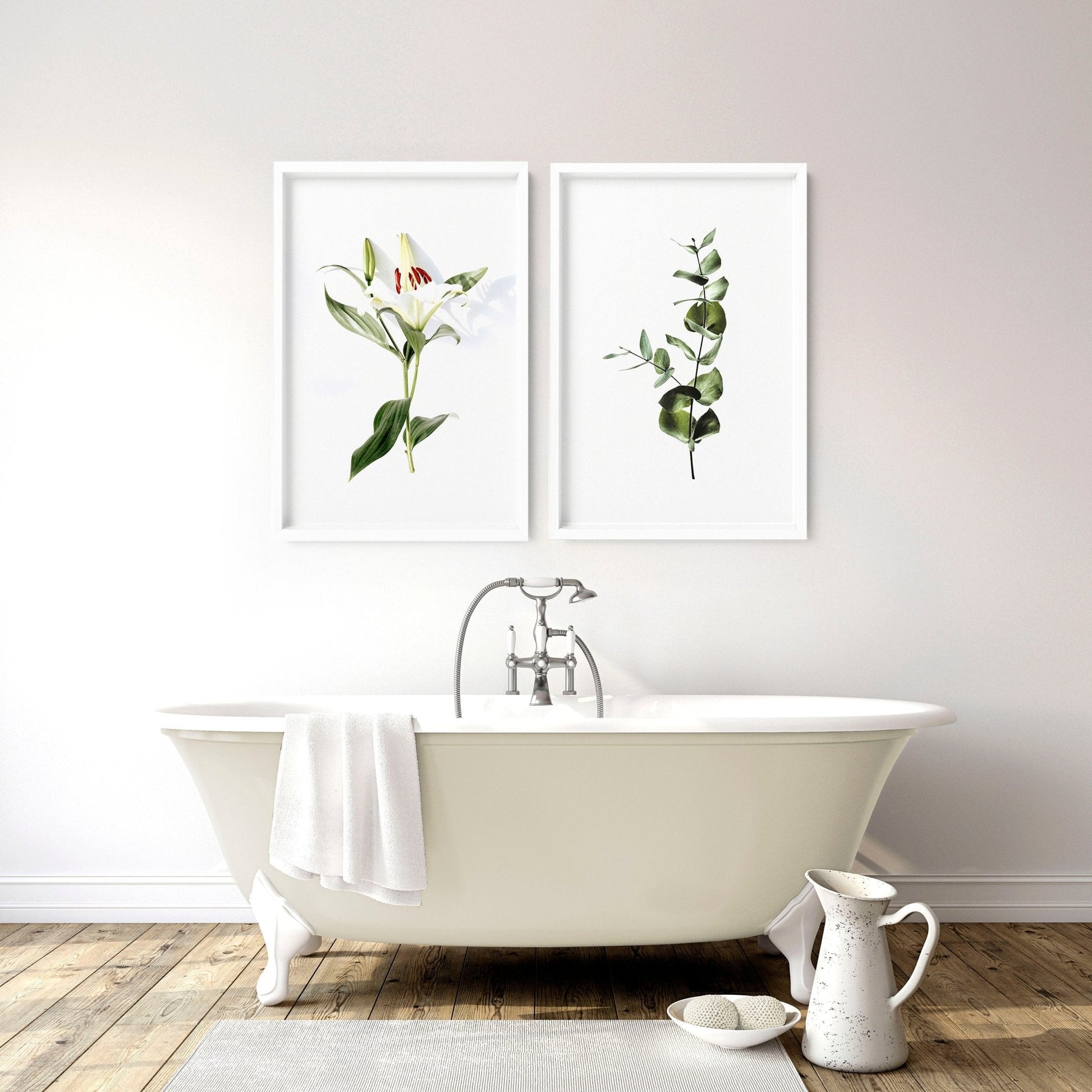 Art for the bathroom wall | set of 2 Floral wall art prints