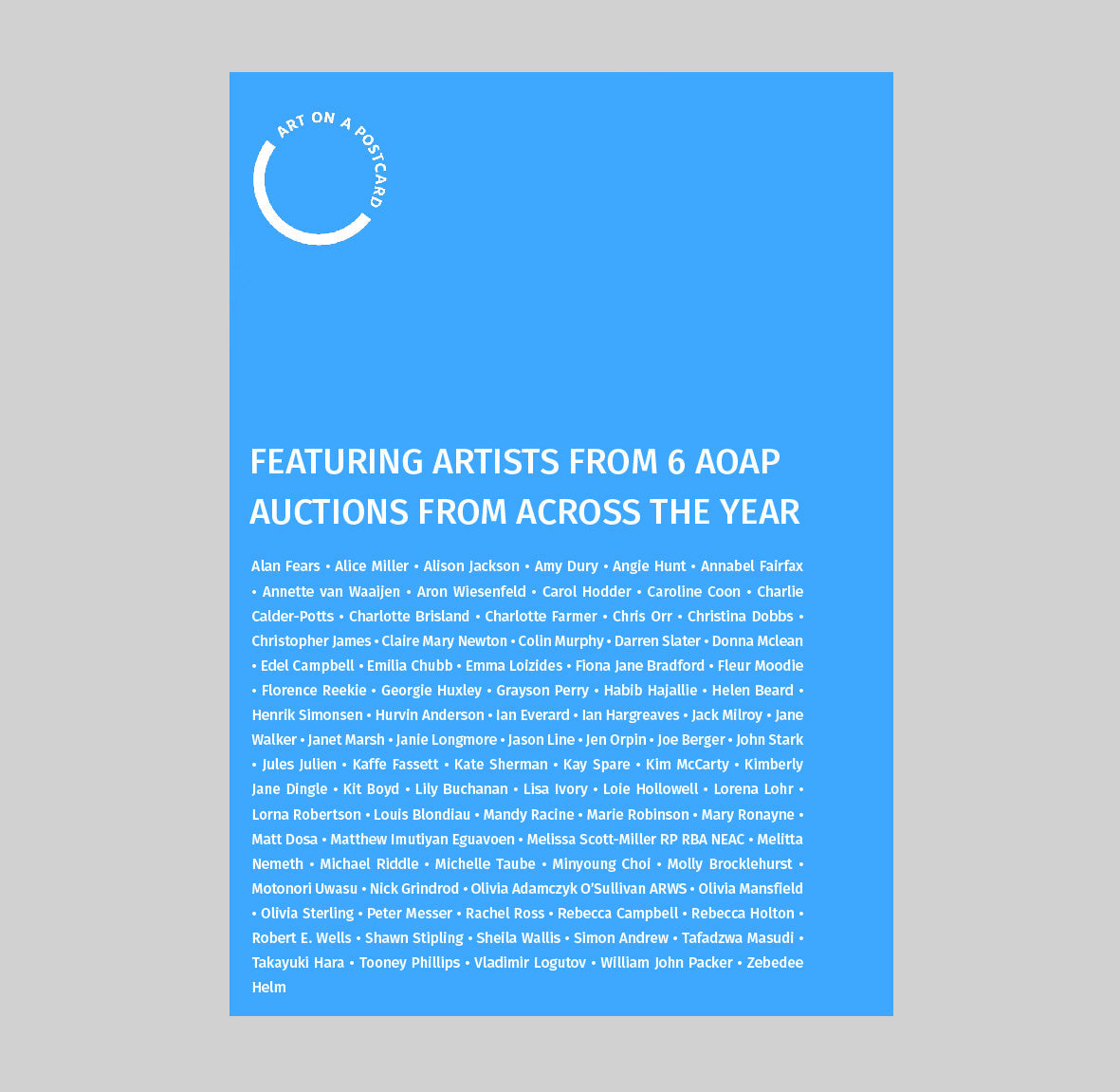 85 Postcards by artists who took part in Art on a Postcard Auctions in 2023