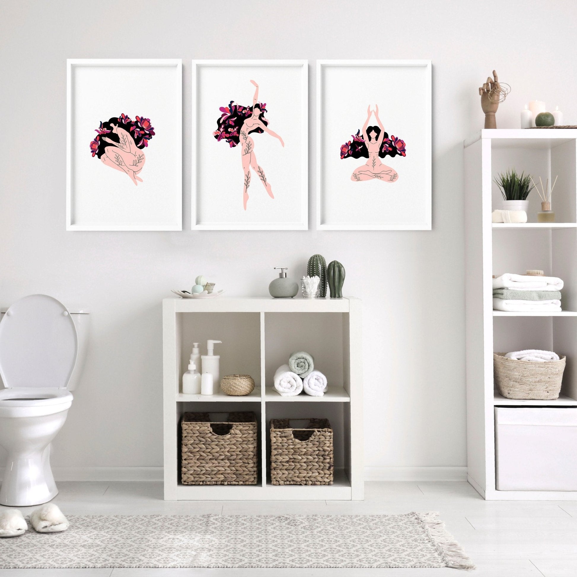 Elevate your home decor with this exquisite set of 3 Art prints for the bathroom. Designed specifically to enhance the aesthetic appeal of your bathroom space, these captivating illustrations of women infuse your bathroom with elegance and tranquillity.