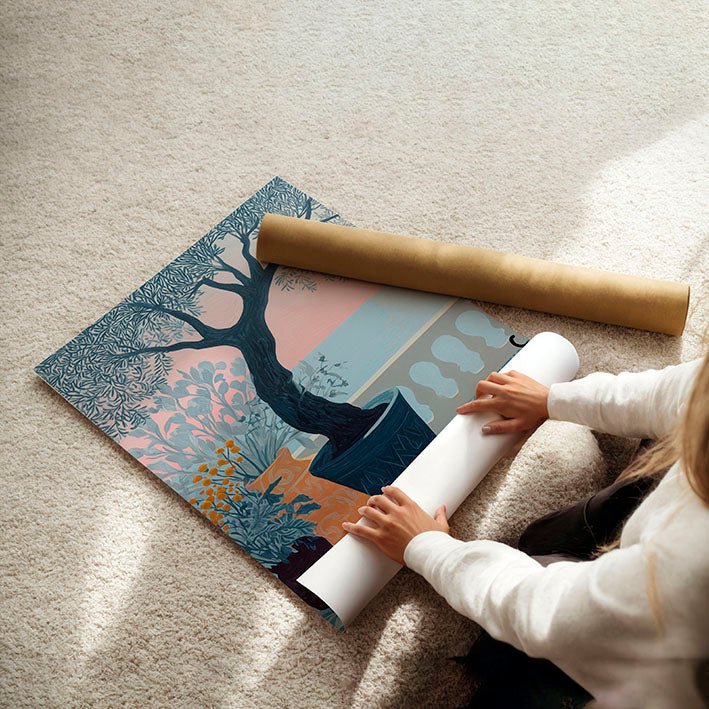 Visualise the transformative power of these prints; the combination of deep blues and intricate Italian designs instantly adds flair and sophistication. While they serve as a statement piece, they also beautifully complement a variety of interior styles. Imagine waking up to a daily dose of Italian charm, where art and life harmonise in perfect balance.