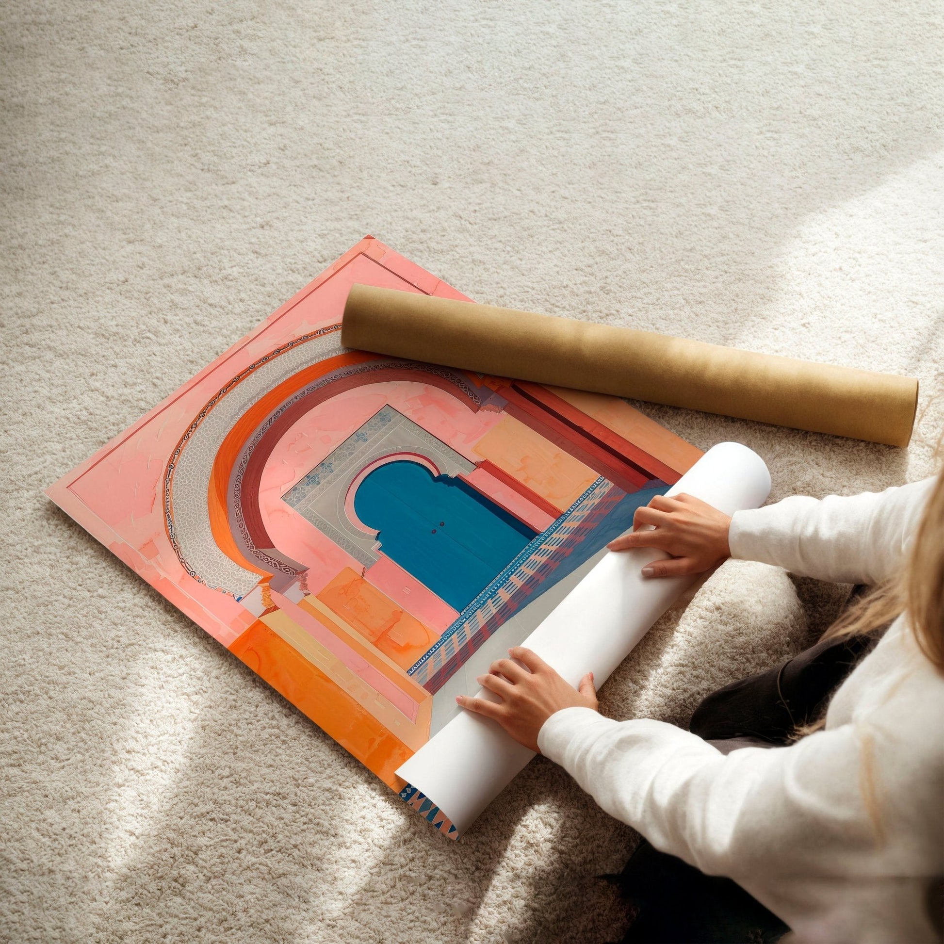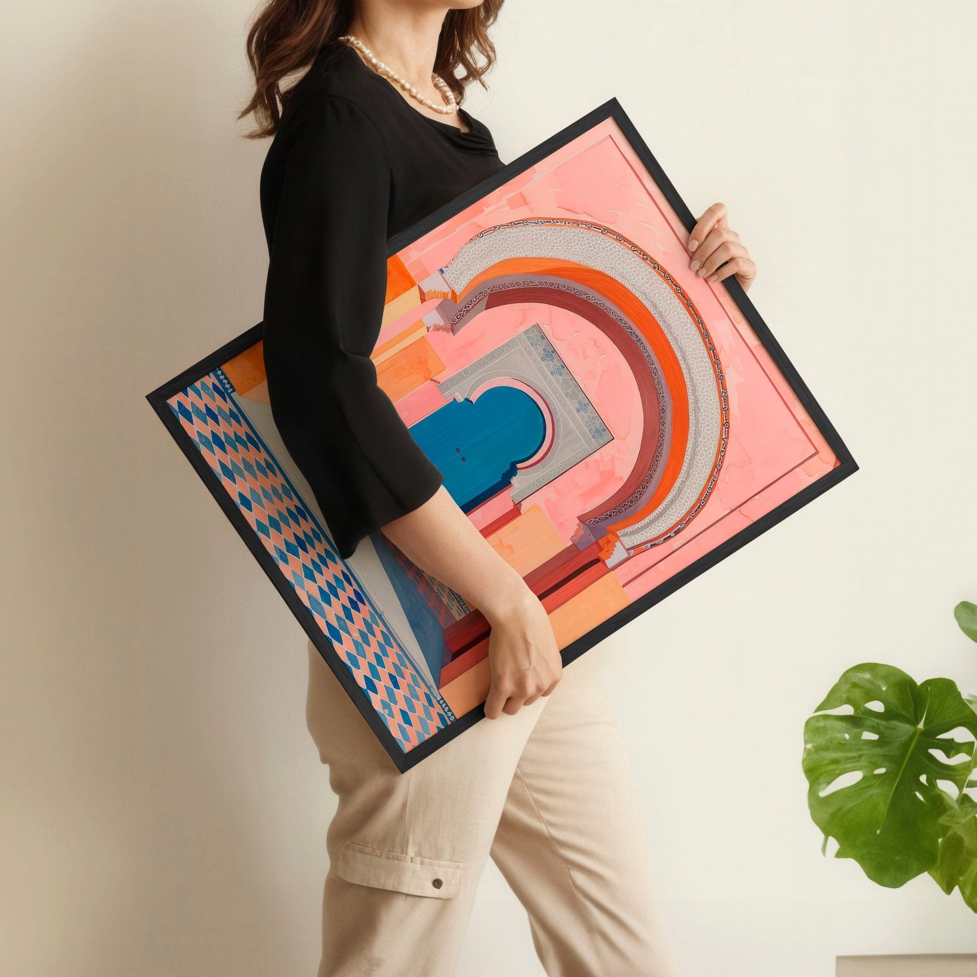 Immerse yourself in the scintillating beauty of Moroccan artistry. The patterns dance across every print with bright blues, sunlit golds, and desert reds, creating a symphony of hues that enlivens any office environment. These artworks act as a dynamic focal point, making your workspace not only more aesthetically pleasing but also a source of inspiration and tranquillity.
