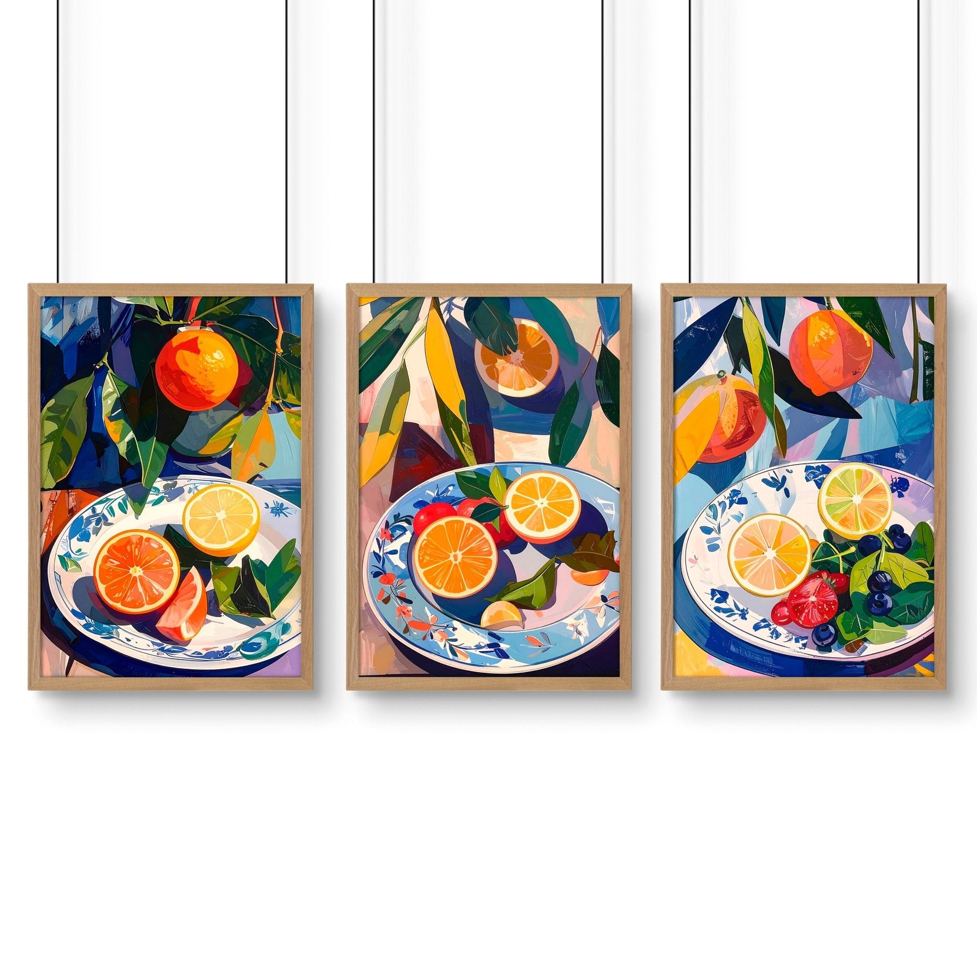 But there's more. The cheerful citrus style not only enhances your decor but also stimulates the senses, creating a warm and welcoming environment. These prints invite a sense of joy and freshness that can transform mealtime into an experience, making them perfect for those who love to entertain or simply enjoy a vibrant home.