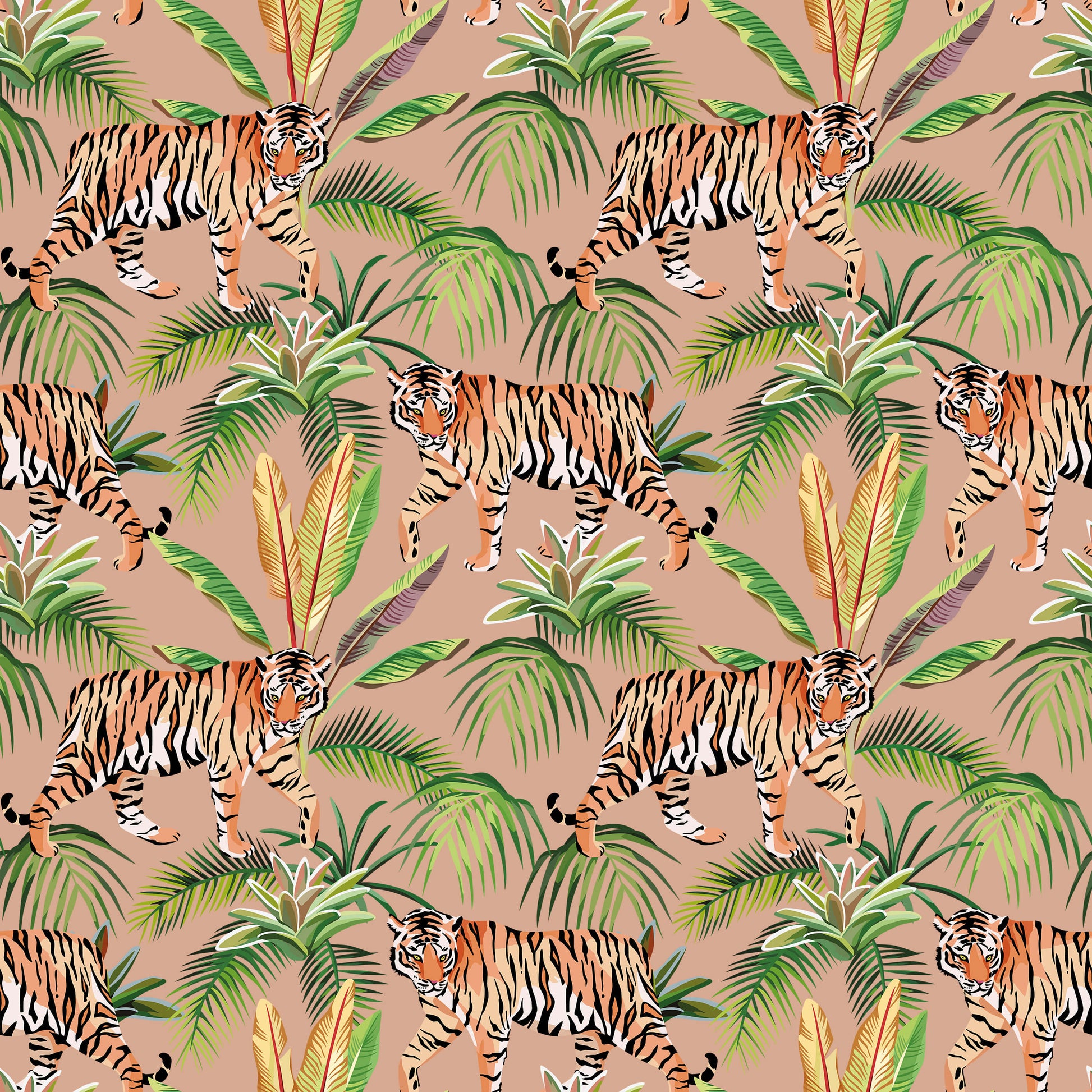 Welcome to the wild and exotic energy of the tropics with our tropical tiger wallpaper. This striking design features the majestic presence of a tiger amidst lush tropical foliage, immersing your surroundings in a captivating display of untamed beauty.