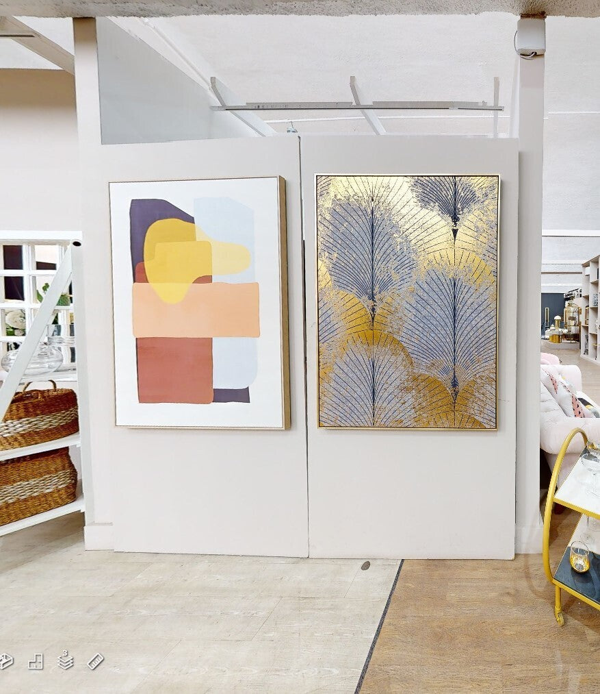 Position above a console to welcome guests with a subtle statement or hang in a dining area to introduce colour without overwhelming the table setting.