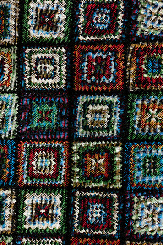 Bring a retro twist to your wardrobe with our bestselling Aubin A-line, mini skirt, now in a dramatic multicoloured '70's patchwork woven jacquard. Perfect for turning heads and brightening any day.