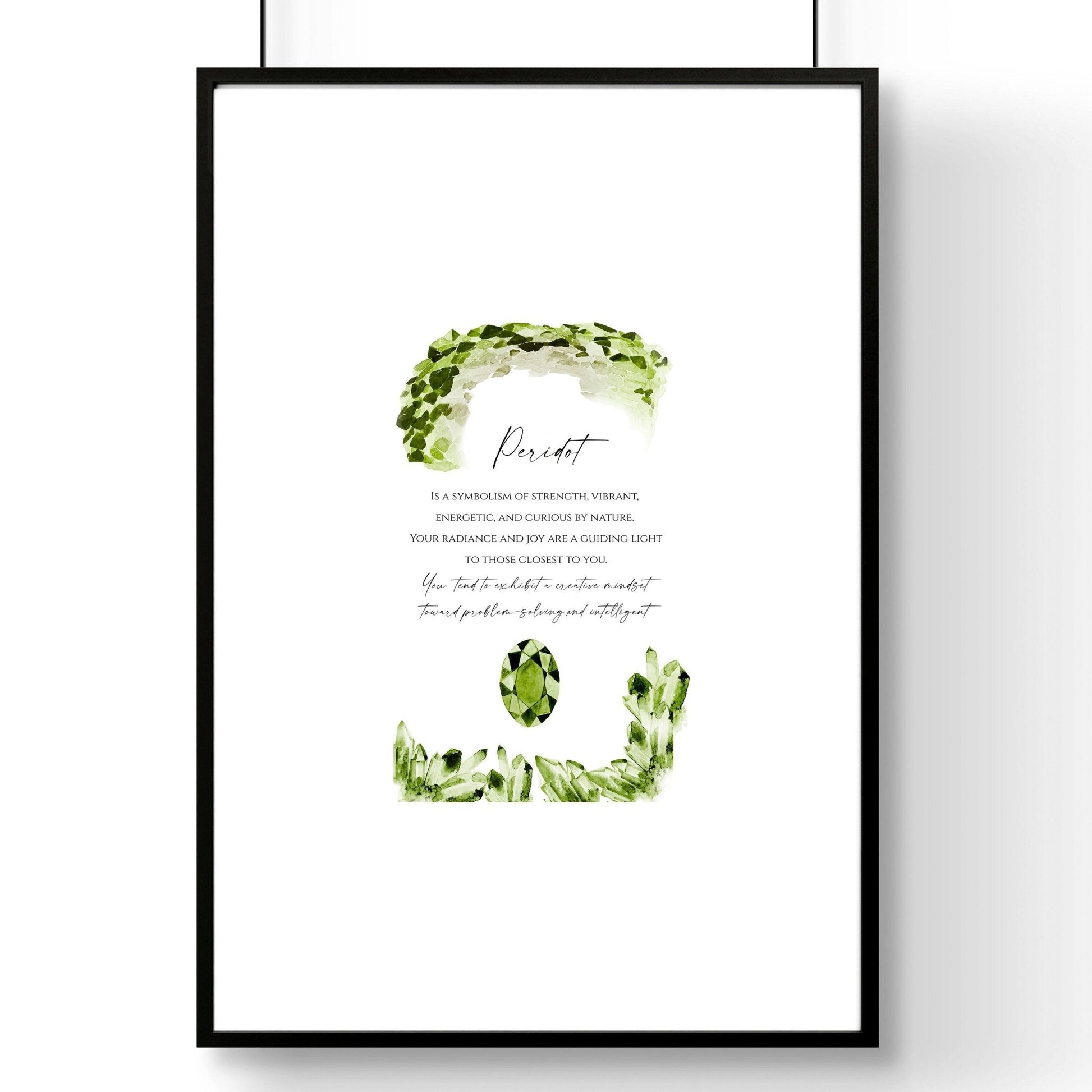 Overall, the August Peridot Birthstone wall art print is a must-have for anyone who loves the beauty of nature and the magic of birthstones.