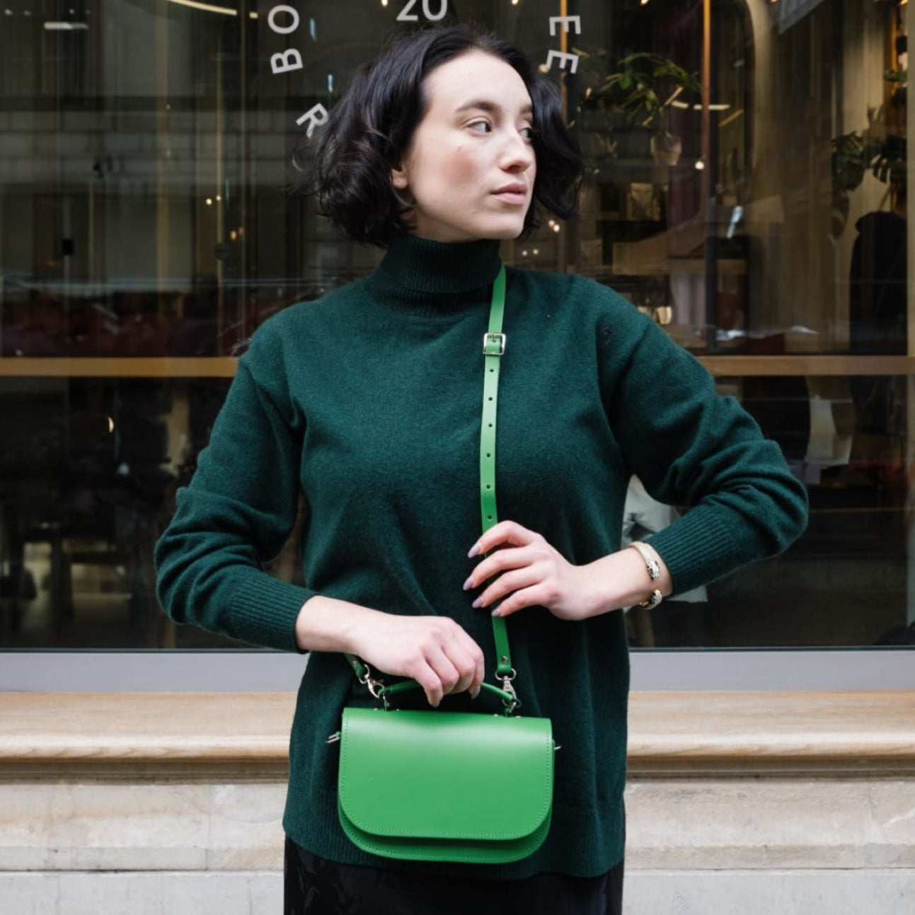 Although big on style, this leather handbag is equally as big on functionality. Featuring a cute carry handle at the top of the bag, the Aura can be carried as a sleek clutch for work or evening occasions. The addition of a detachable leather strap means this leather handbag can also be worn cross body or as a shoulder bag.