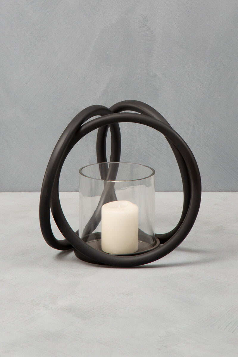 Bring elevated ambience to any setting with this Small Matte Black Candle Holder from Orsina's Aura collection. Hand cast in premium aluminium and finished in a refined matte black, it frames candlelight with a crisp silhouette, while the clear, open design lets the flame glow without distraction.