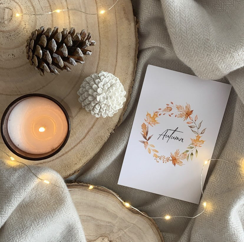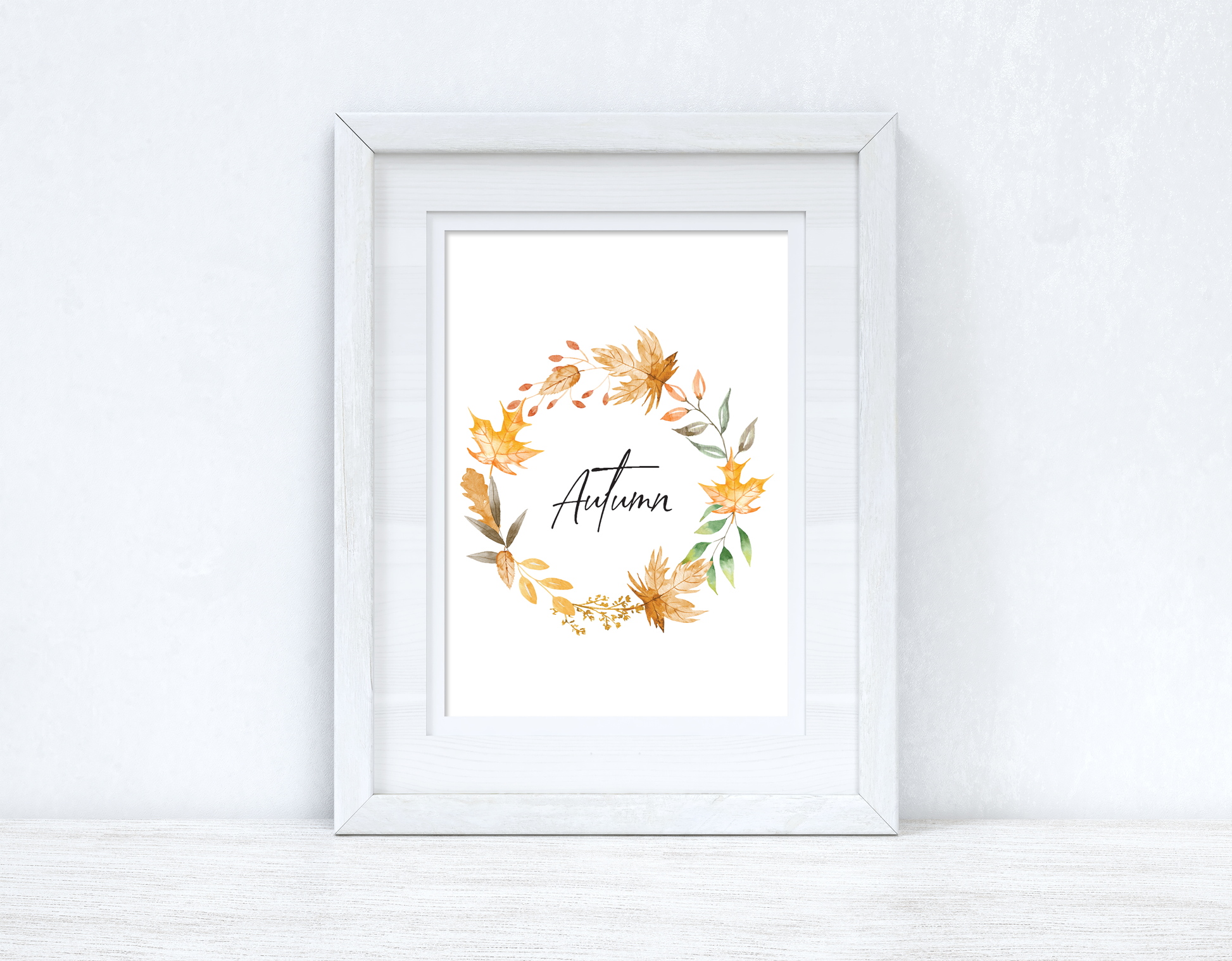 Autumn Watercolour Leaf Wreath Autumn Seasonal Wall Home Decor Print