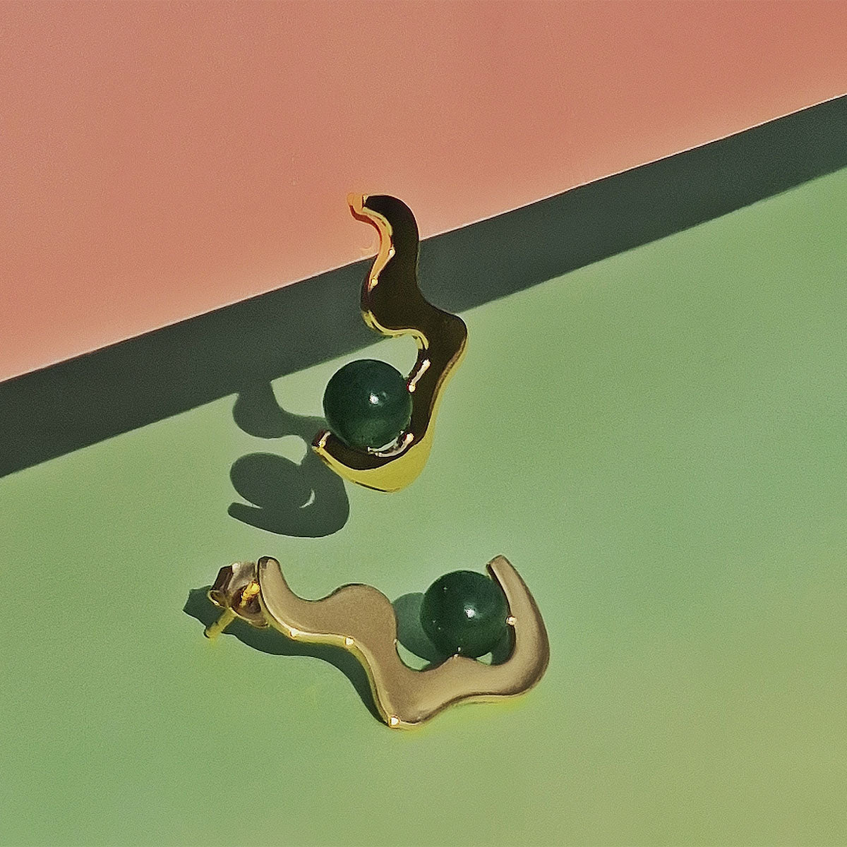 Indulge in the fiery beauty of our Aventurine Wave Drop Stud Earrings. These golden studs exude elegance and style with their unique wavy design and stunning aventurine beads. Make a statement and add a touch of heat to any outfit. Love yourself, love these waves!