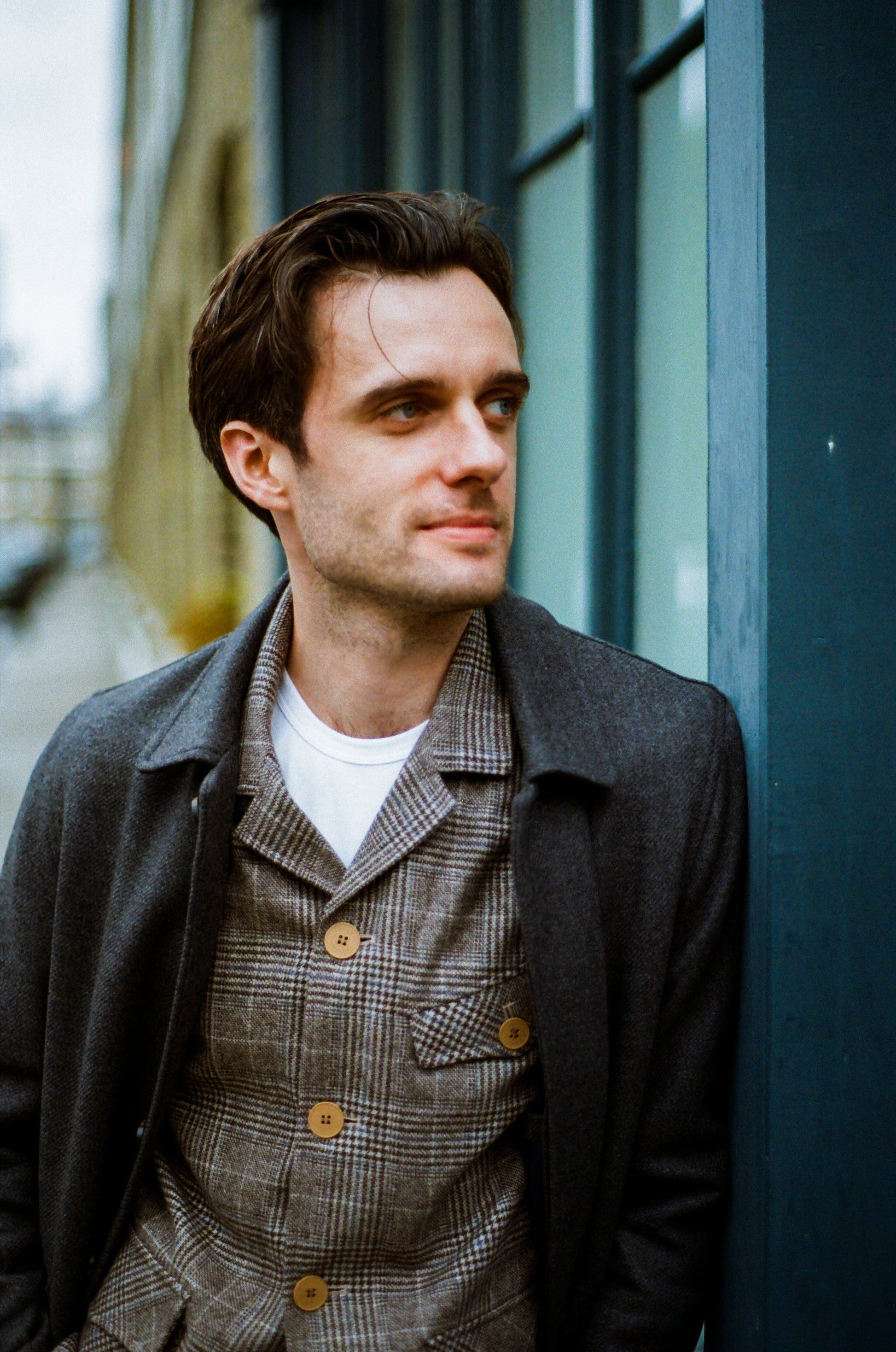 This Bailey Casual Blazer comes in our Vargas Wool Check fabric, a Grey, Navy and Ecru Check fabric, this fabric's wool blend gives it warmth and breathability whilst the Polyester gives it structure and durability