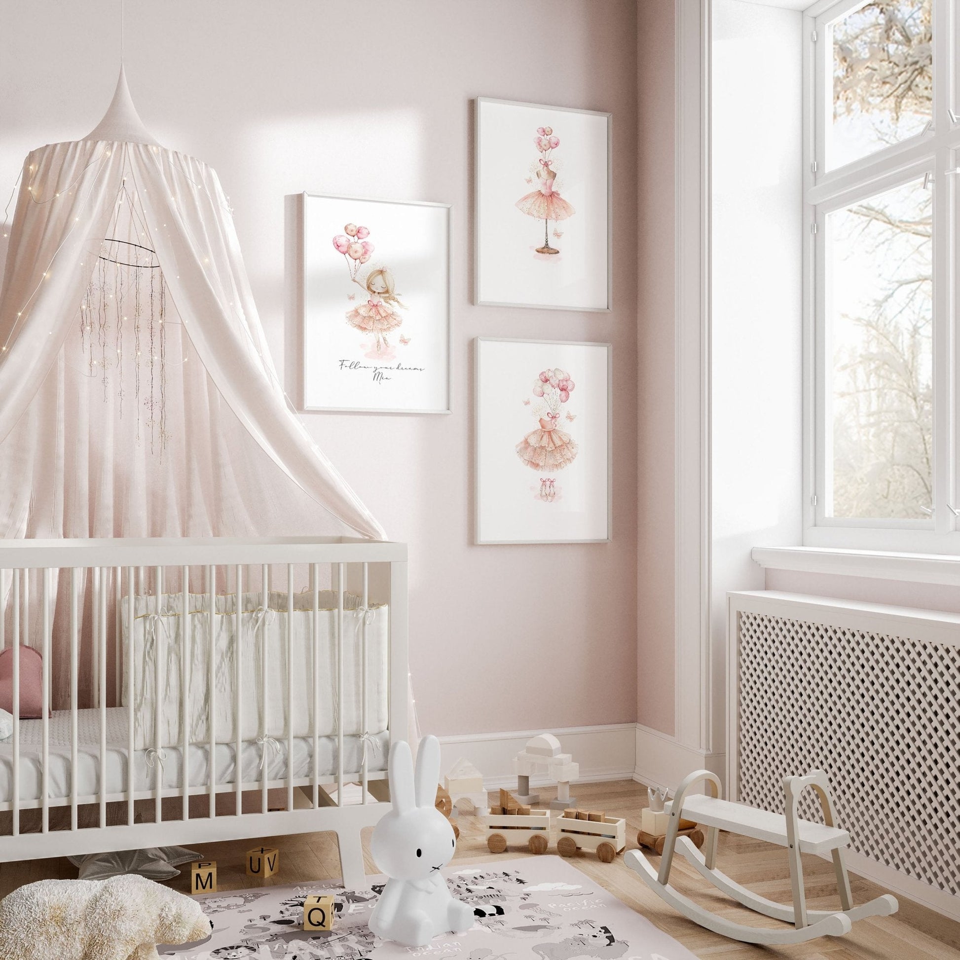 Transform your nursery with our captivating Ballerina Artwork, a Set of 3 wall art prints that promise to enchant any space. These prints are designed in a soft pastel art colour palette to capture the elegance of ballet. They certainly transform a girls room a serene and dreamy atmosphere. Imagine the walls adorned with the delicate poise of dancing ballerinas, bringing in a sense of grace that enchants.