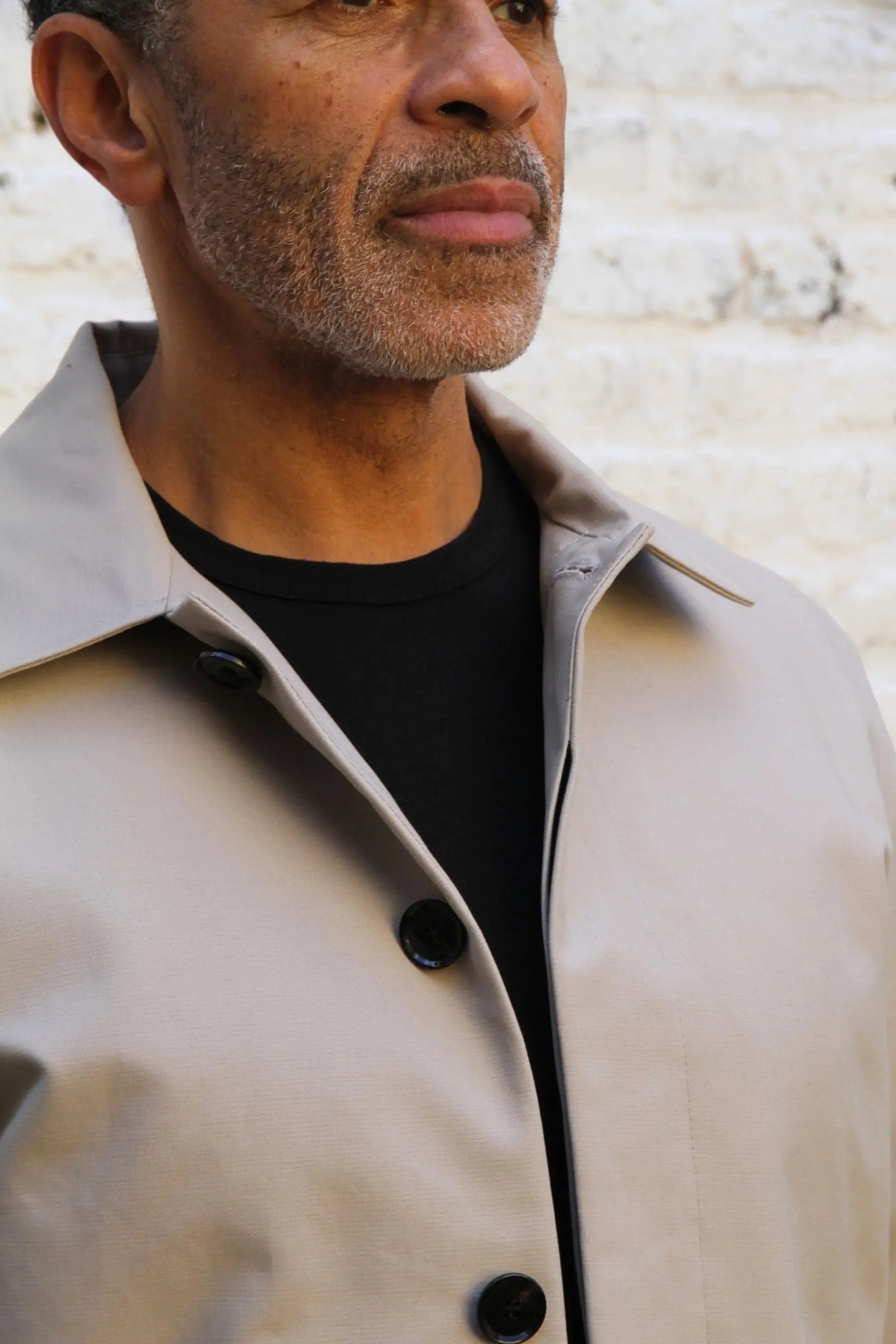 We have gone with a fly-front fastening, so the buttons are concealed to give that neat finish. We have made this one a bit shorter than our other mac, so it can be comfortably worn whilst in a seated position...if you are driving for example. We like to consider these small details.