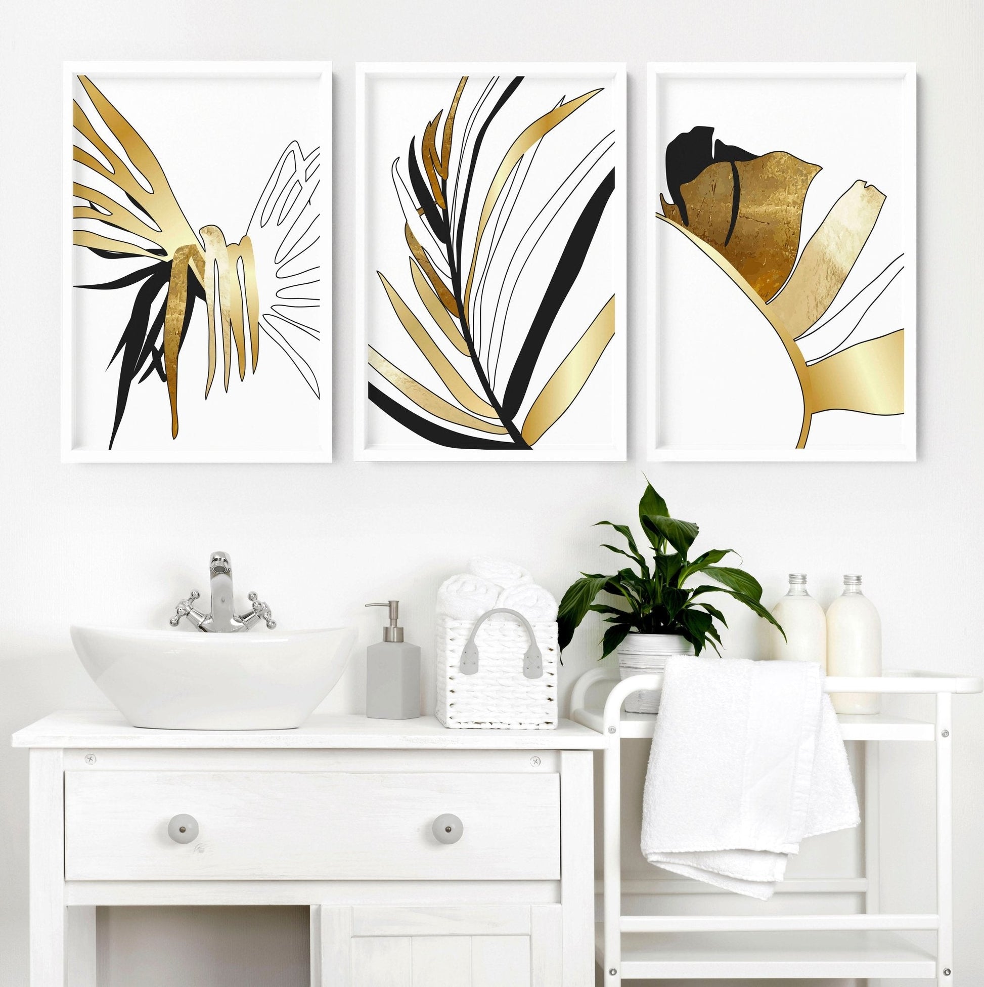 Bathroom wall art uk | set of 3 Tropical Gold wall art
