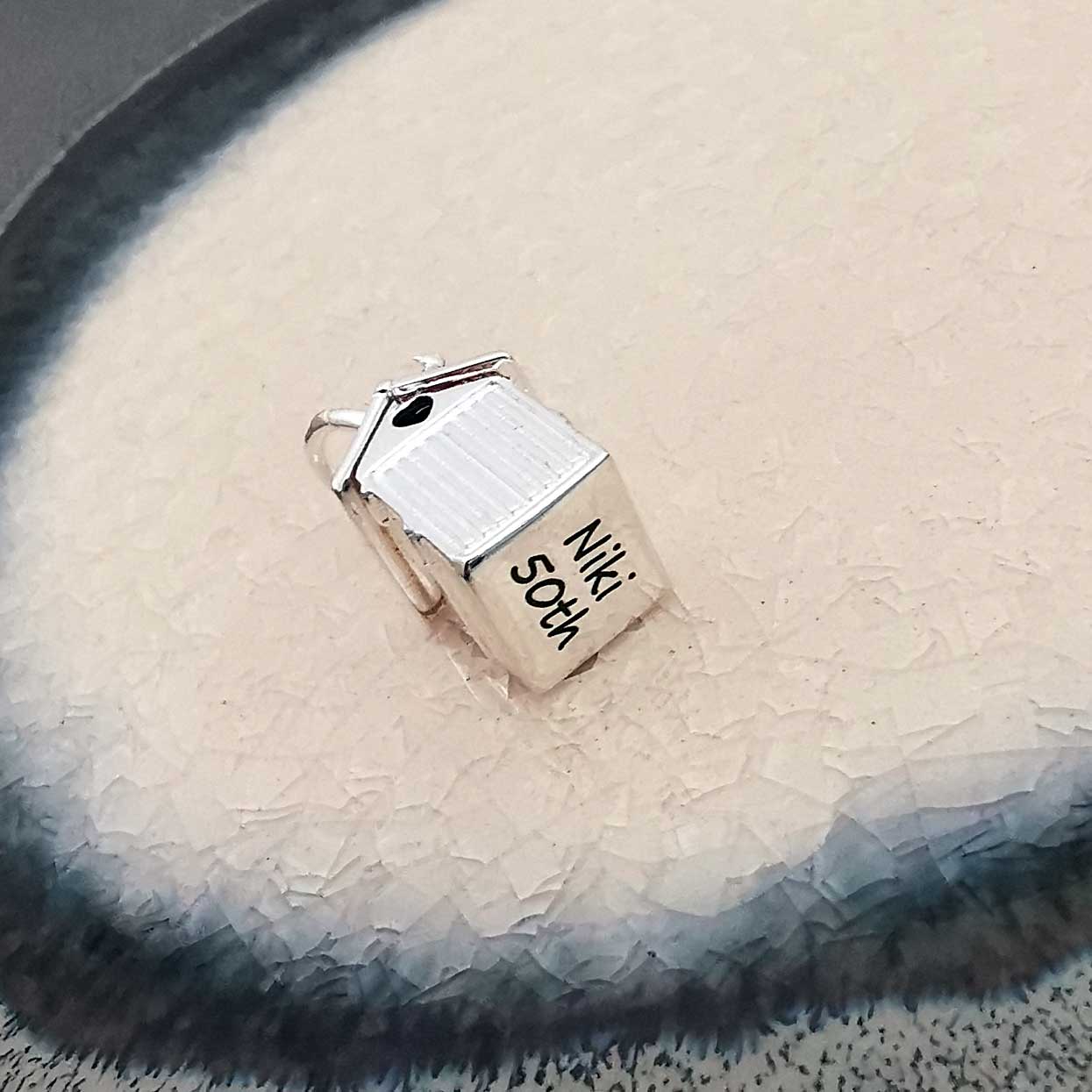 Beach Hut Personalised Silver Charm
